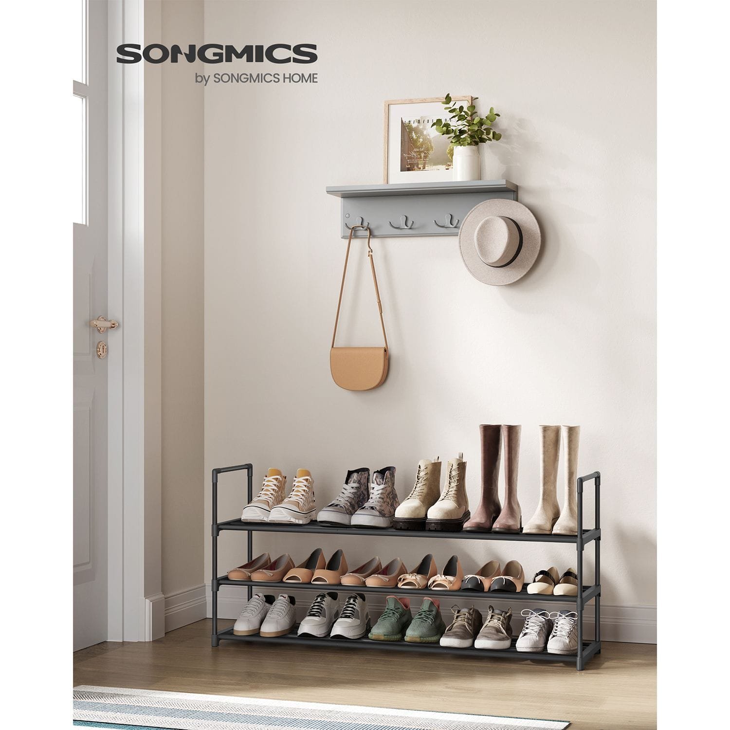 3-lagers skoställ, skoförvaringsenheter, metallförvaringsställ, 116 x 30 x 55 cm, svart