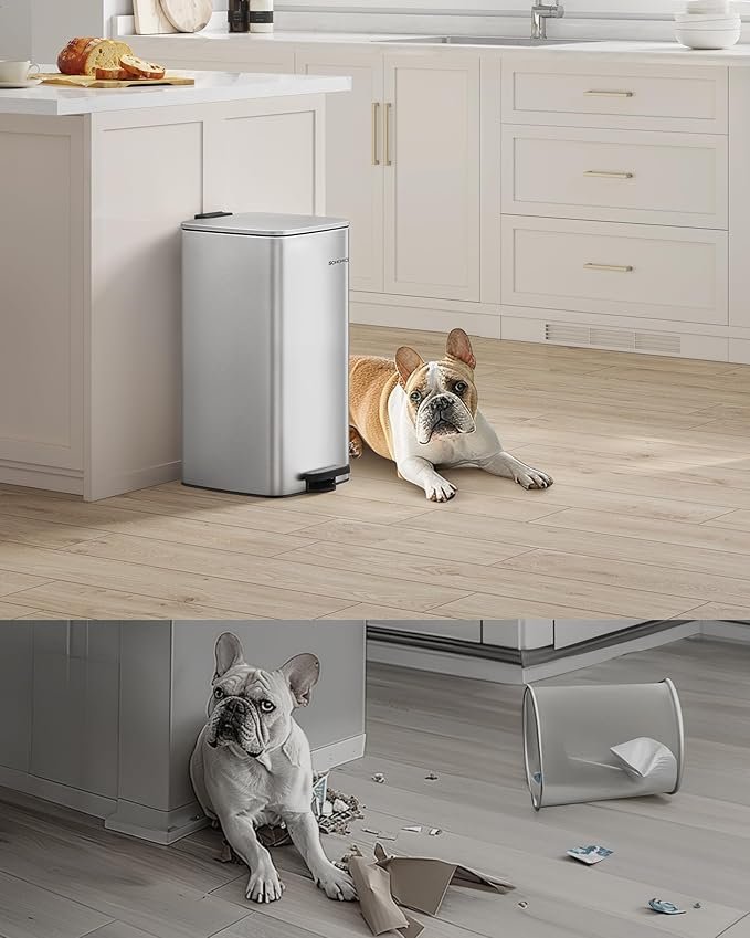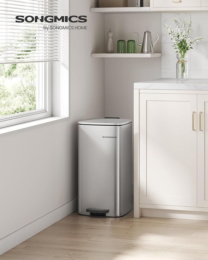 【STÄNGS MJUKT OCH STÅR ÖPPET】Lockat på denna pedalhink har ett långsamt och tyst stängningssystem. Den kan också hållas öppen för längre uppgifter genom att lyfta den 90°, för att göra dig av med ditt avfall enklare.