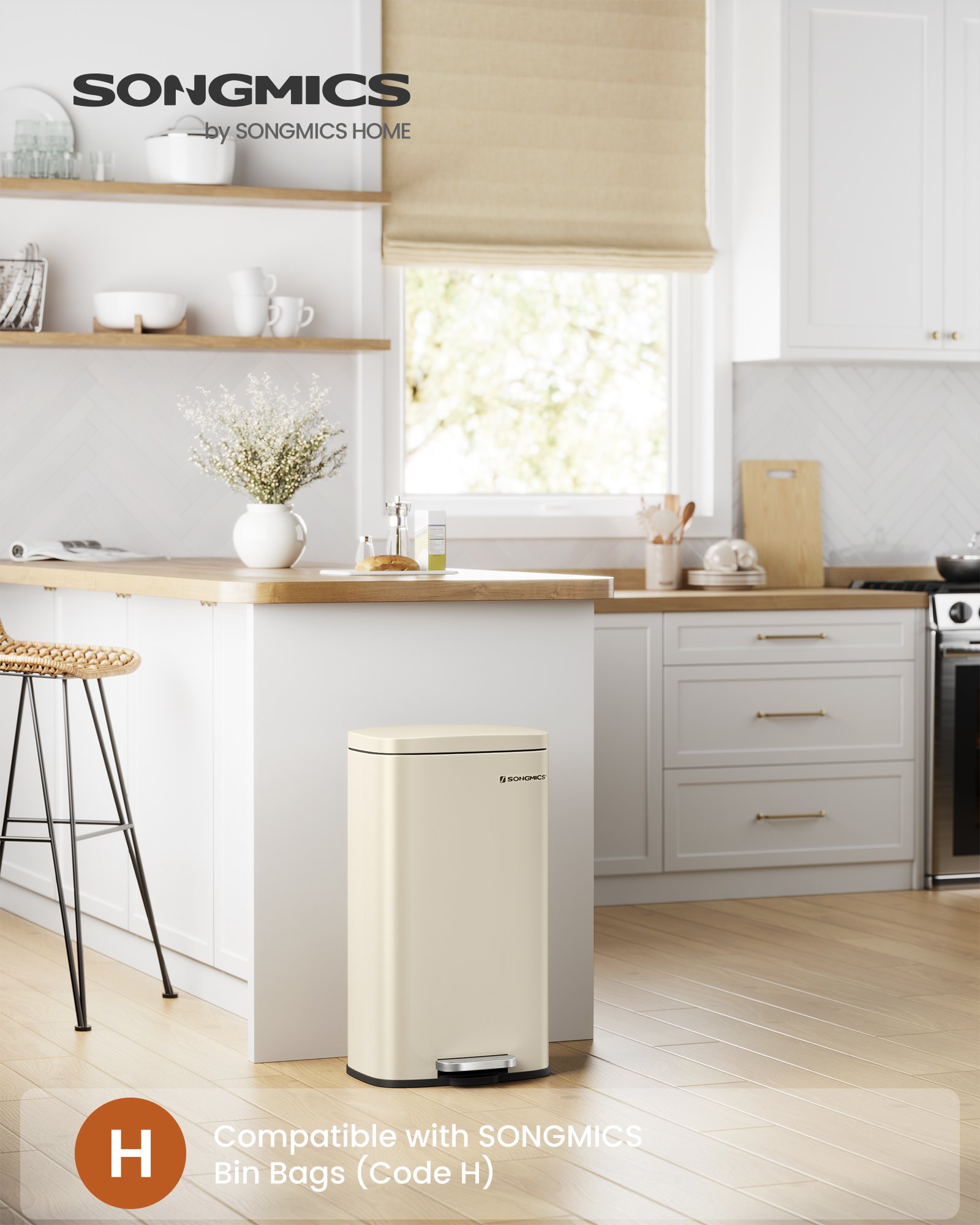 30L kökssoptunna med mjukstängande lock och innerhink, sandbeige
