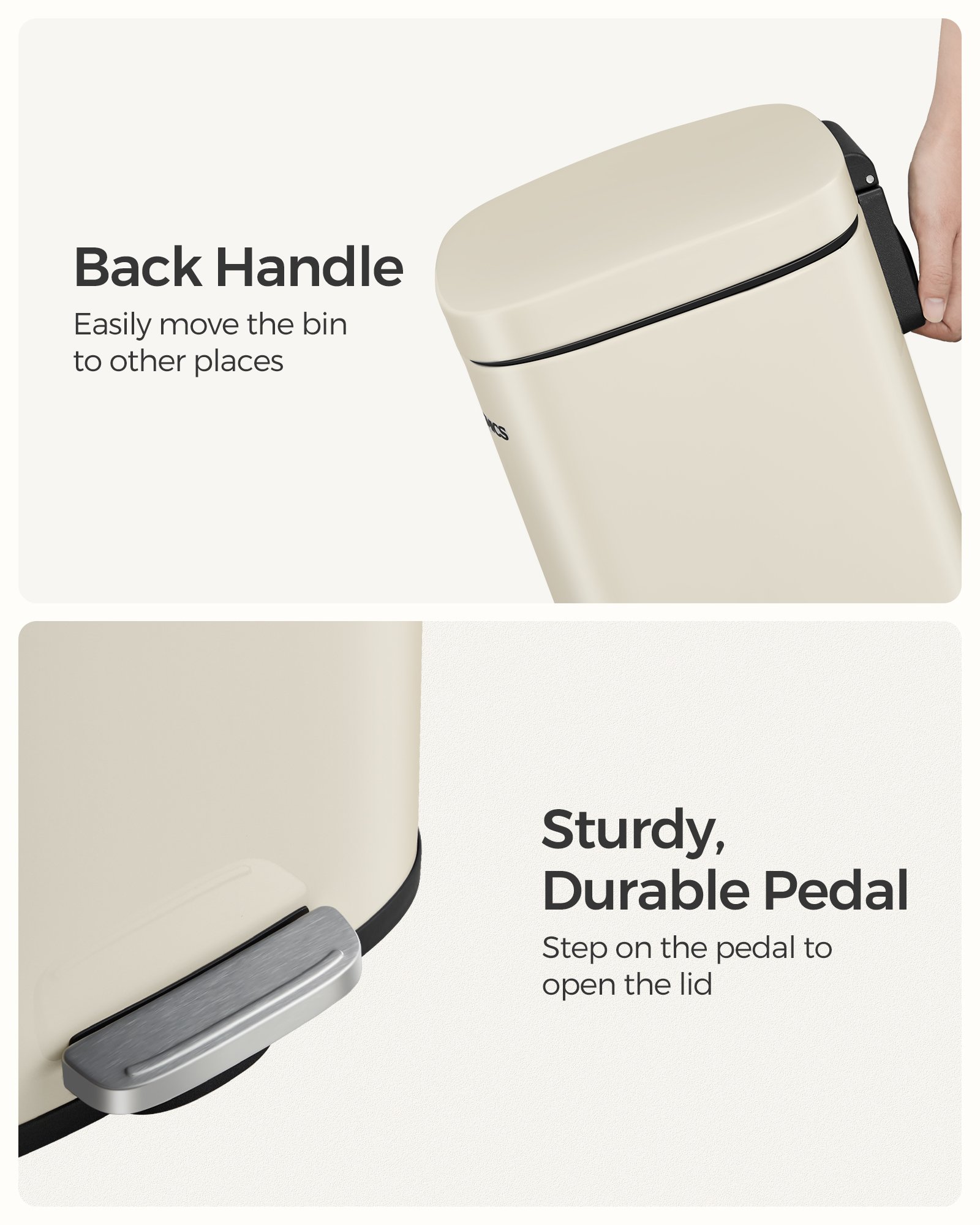 Praktiska funktioner: Fäst soptunnorna snyggt med innerhinkens design och flytta behållaren enkelt med det praktiska bakre handtaget