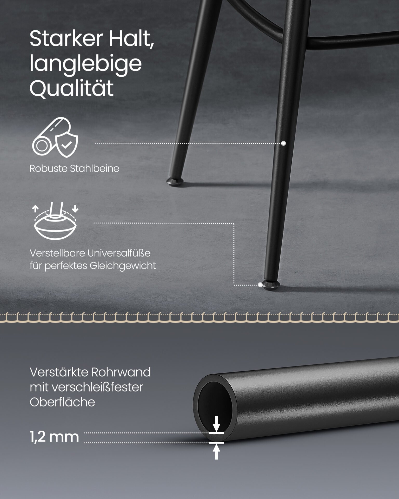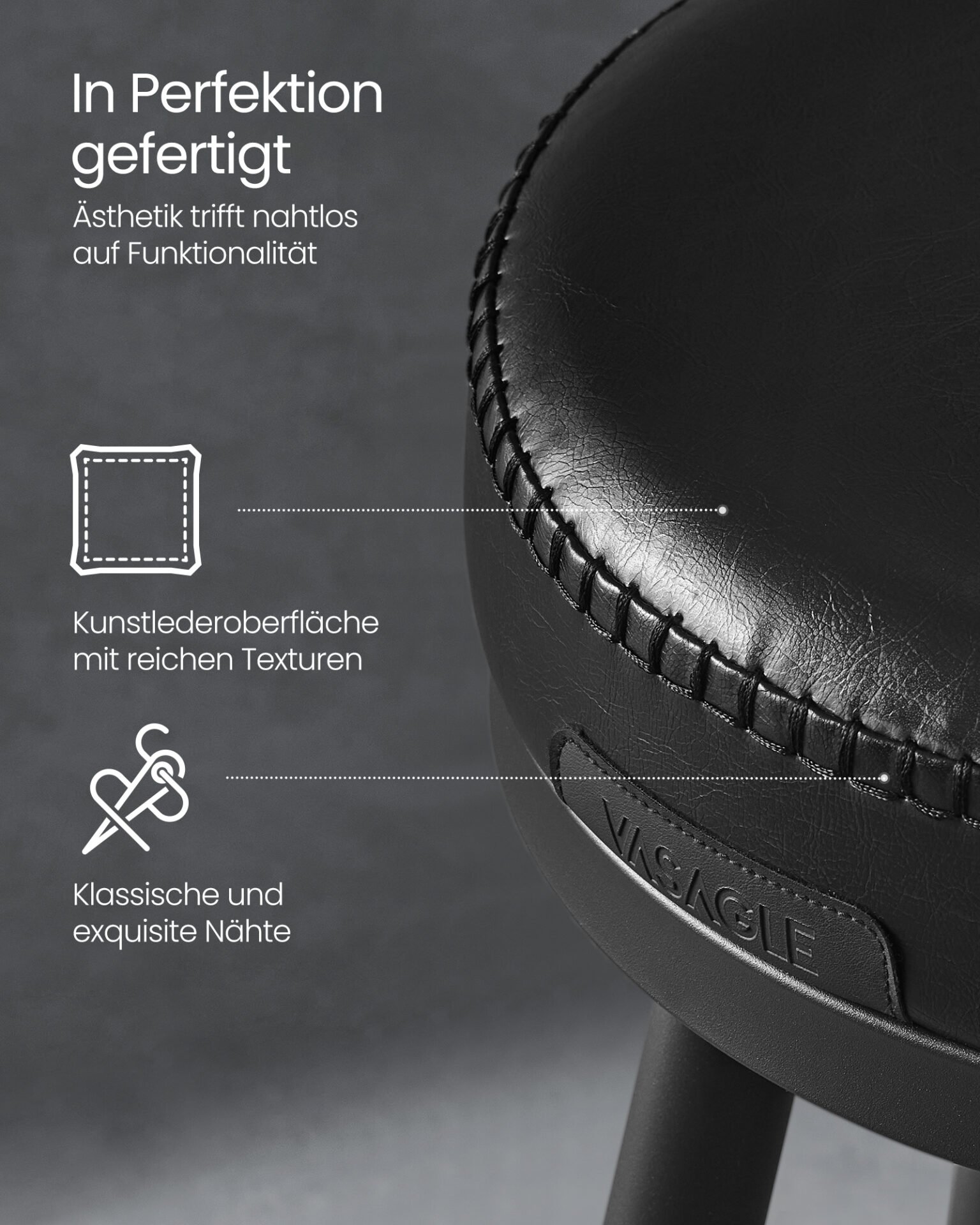[Lättskött, hållbart och elegant] Något spillt? Inga problem! Vårt vattentäta konstläderöverdrag gör rengöringen till en barnlek. Tillsammans med de reptåliga benen i matt stål behåller våra pallar sin högkvalitativa charm under lång tid.
