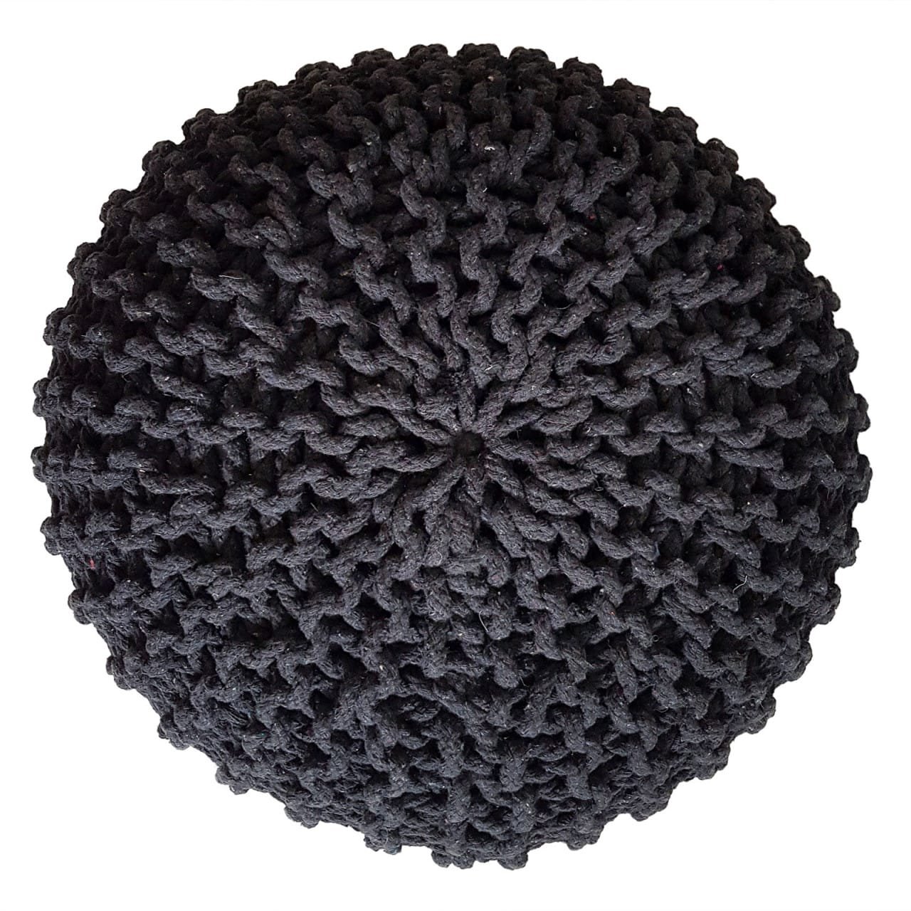Stickad pall Puff Ø 45 cm Grovstickad look Puffstickad Golvkudde Höjd 30 cm – Antracit