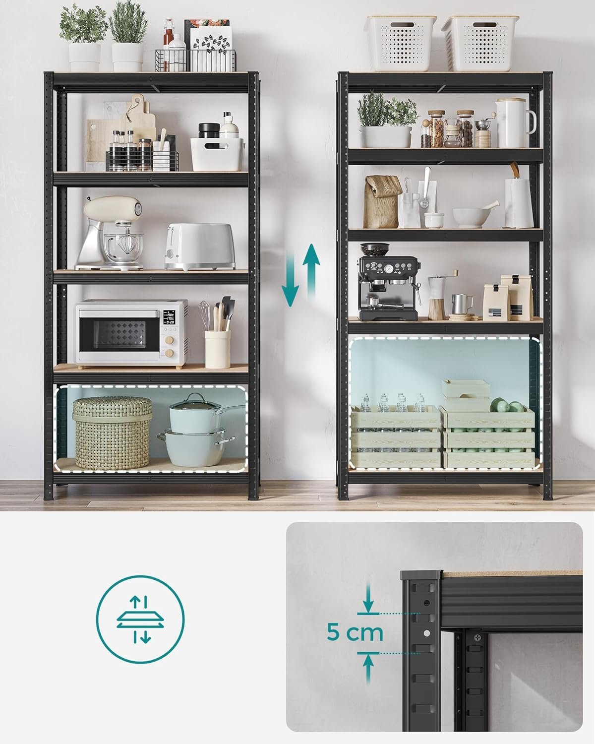 5-våningars kraftiga hyllenheter, set om 2, stålhyllor för förvaring, svart