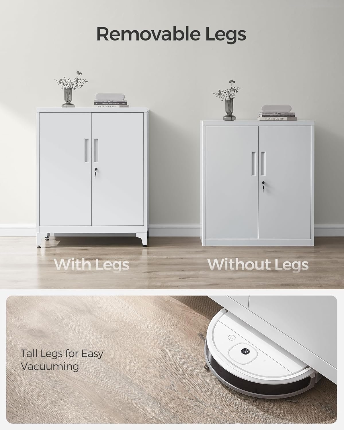 [Rymliga och justerbara hyllor] Detta låsbara förvaringsskåp på 41,5 cm D x 84,5 cm B x 89,6 cm H ger gott om förvaringsutrymme för dina dokument, filer och mer. De två hyllorna kan justeras i höjd, vilket gör det idealiskt för förvaring av föremål i olika storlekar.