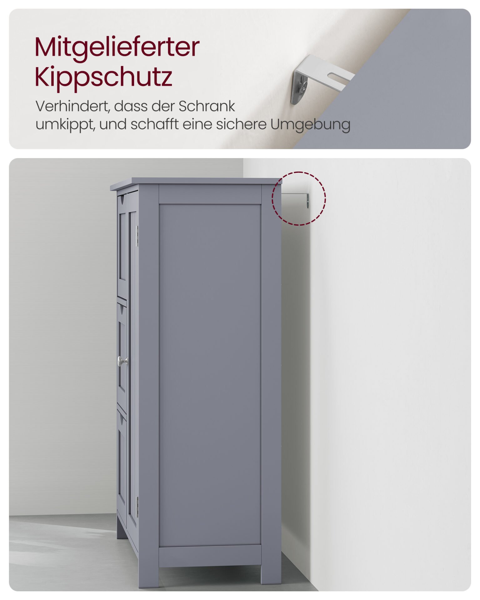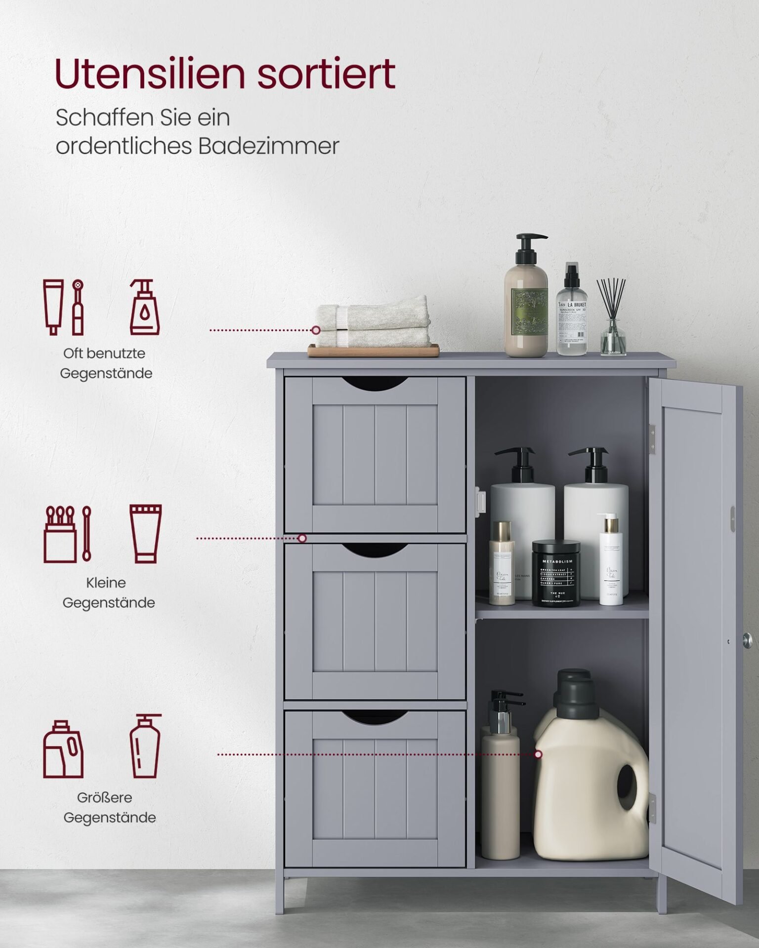 Badrumsskåp, Badrumsförvaringsenhet med 3 lådor, Badrumsskåp, Duvgrå