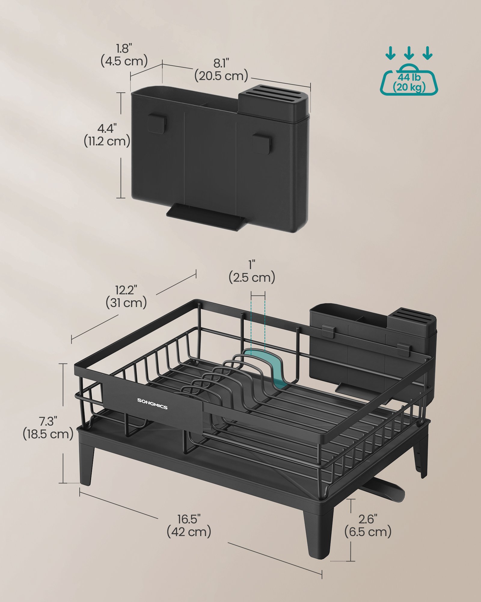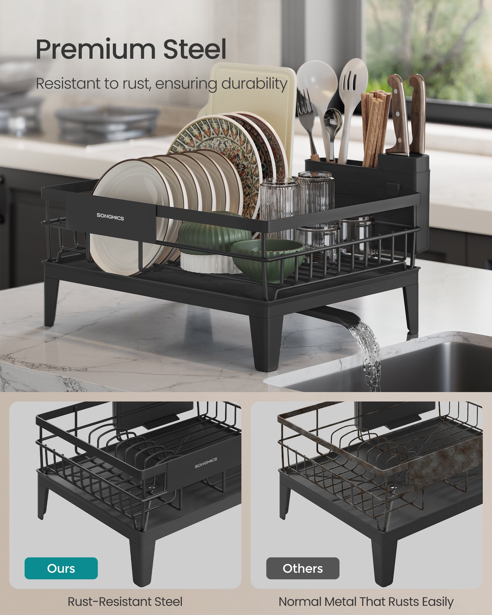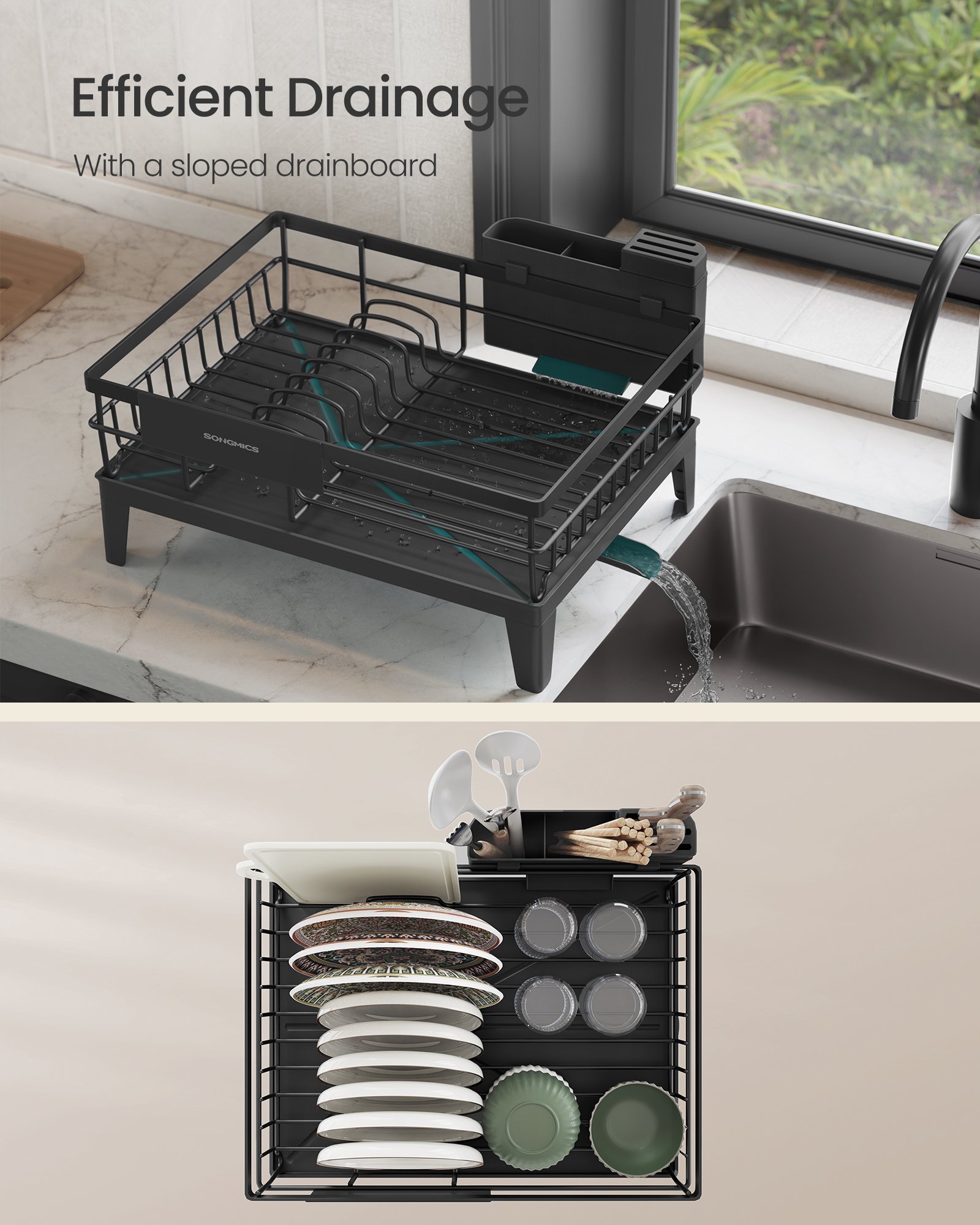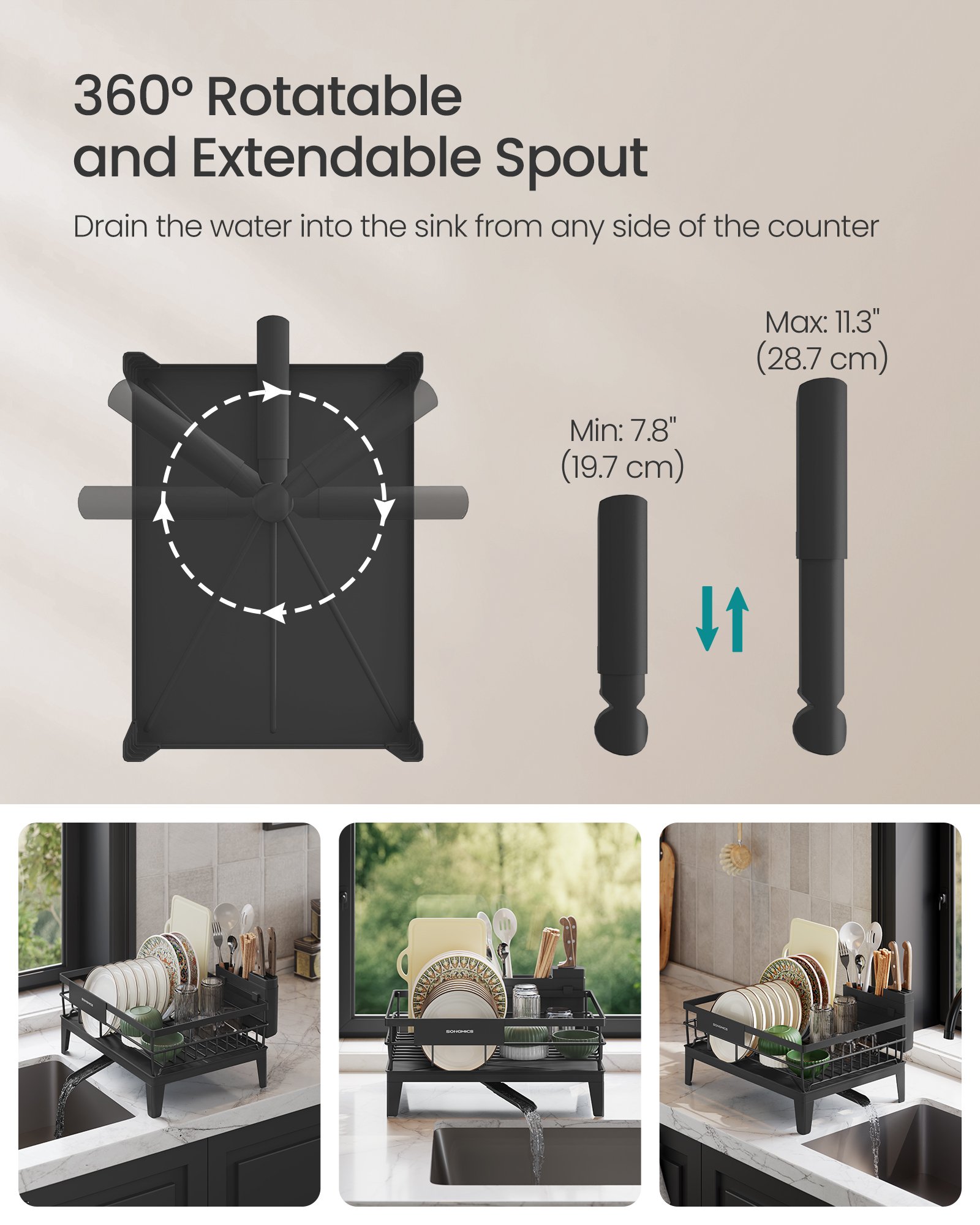 Diskställ, Köksställ, med avrinningsbricka, 360° roterbart, Bläcksvart