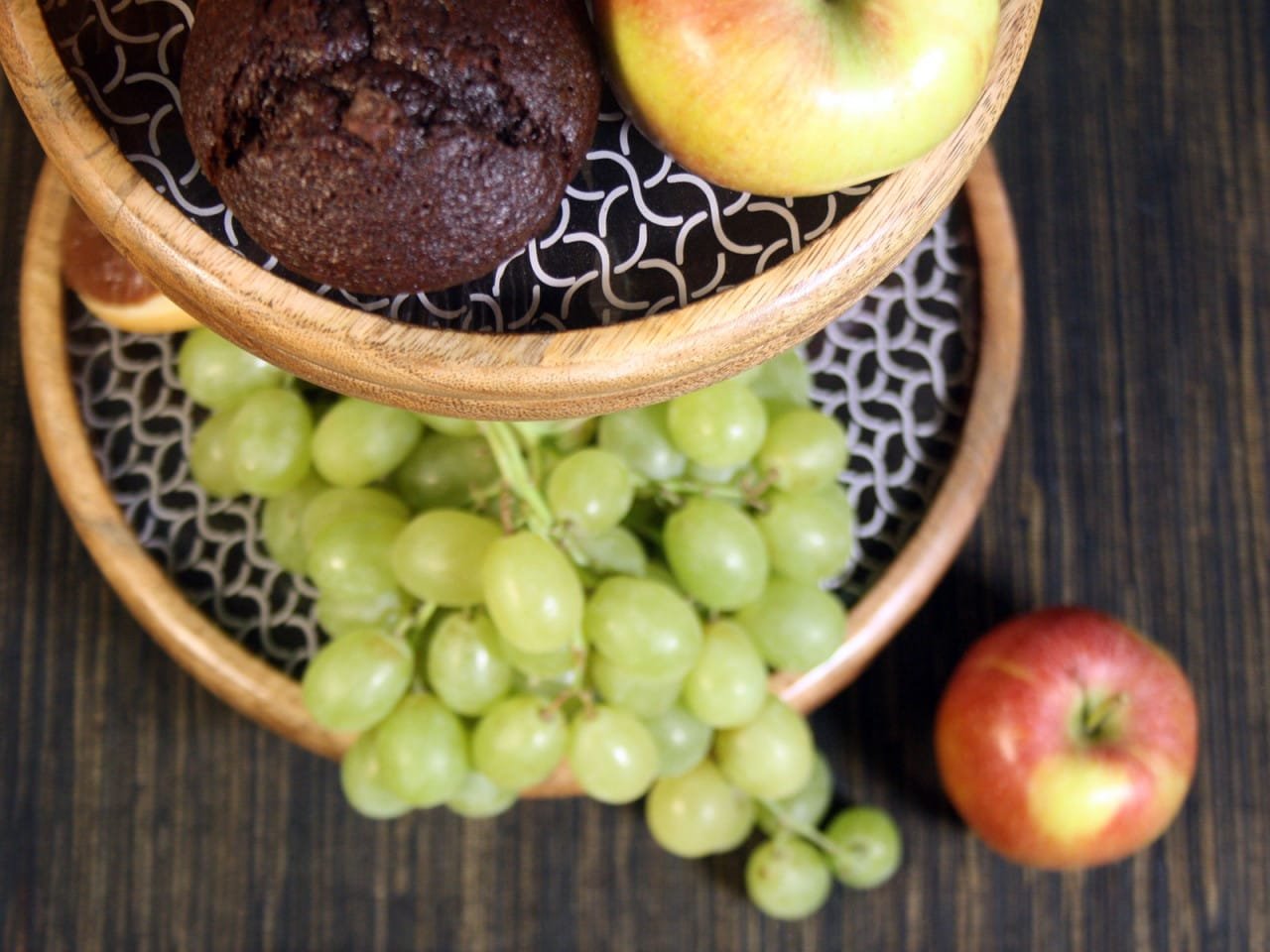 Etagere med 2 plan Etage stativ ø 30 cm mangoträ med keramisk inredning livsmedelssäker