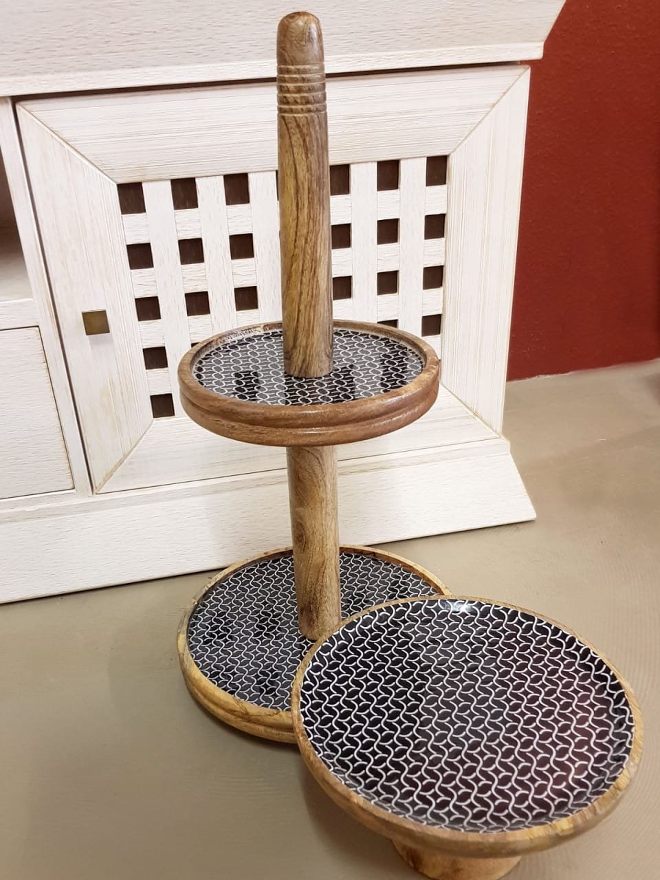 Tallrik etagere gjord av naturligt mangoträ – handtvättbar – tål inte diskmaskin!