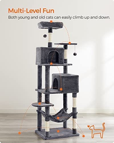 Massor av kul: Med en höjd av 191 cm erbjuder detta kattträd dina lurviga vänner tillräckligt med utrymme för att klättra, koppla av, skärpa klor och observera omgivningen