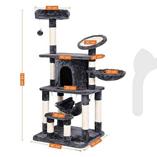 Specifikationer:- Färg: Rökgrå- Material: högkvalitativ spånskiva, plysch, sisal, förstärkt hårdpapp-rulle Storlek: 90 x 55 x 145 cm (LXBXH)- Vikt: 16,4 kg Paketinnehåll:- 1 X Cat Tree- 1 x Instruktioner ( da, de, fr, es, it)