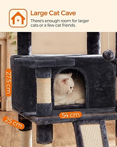 Specialstorlek: Hur är detta kattträd annorlunda? Storleken! Vid 172 cm lång erbjuder det ett exceptionellt hem för dina katter. Med en trapplayout kan både små kattungar och gamla katter klättra upp den som att klättra proffs