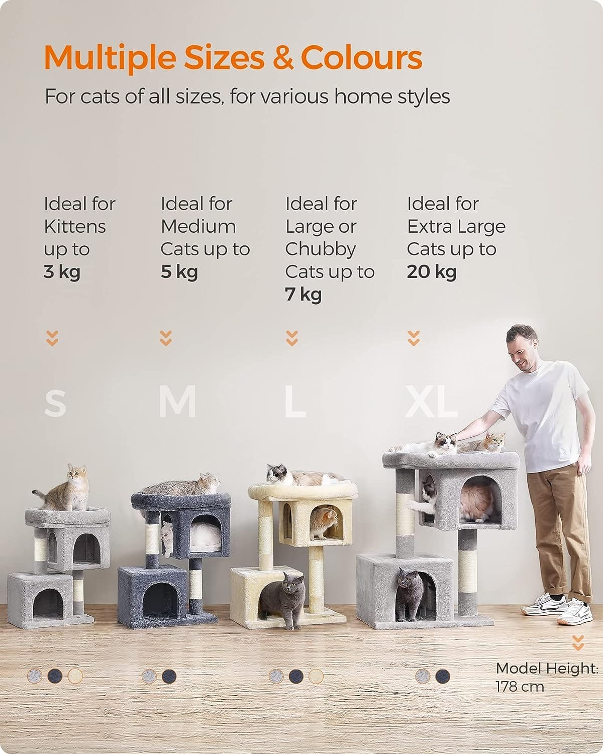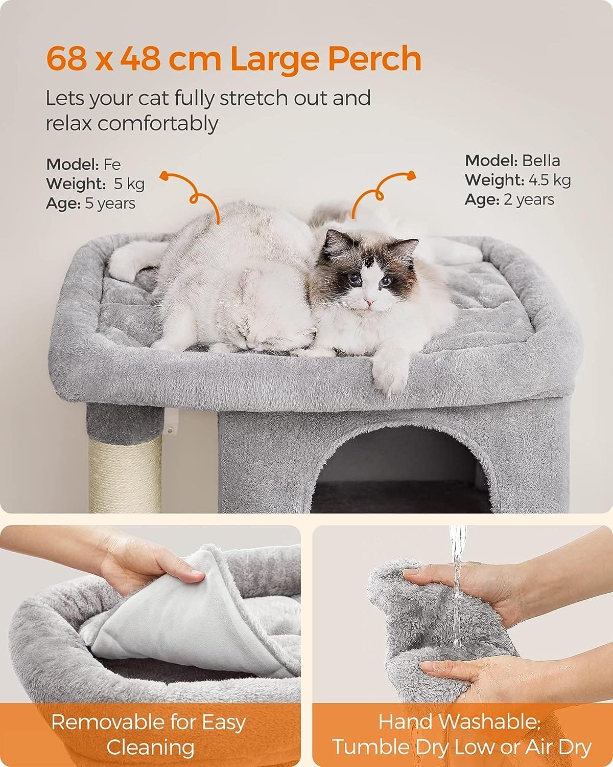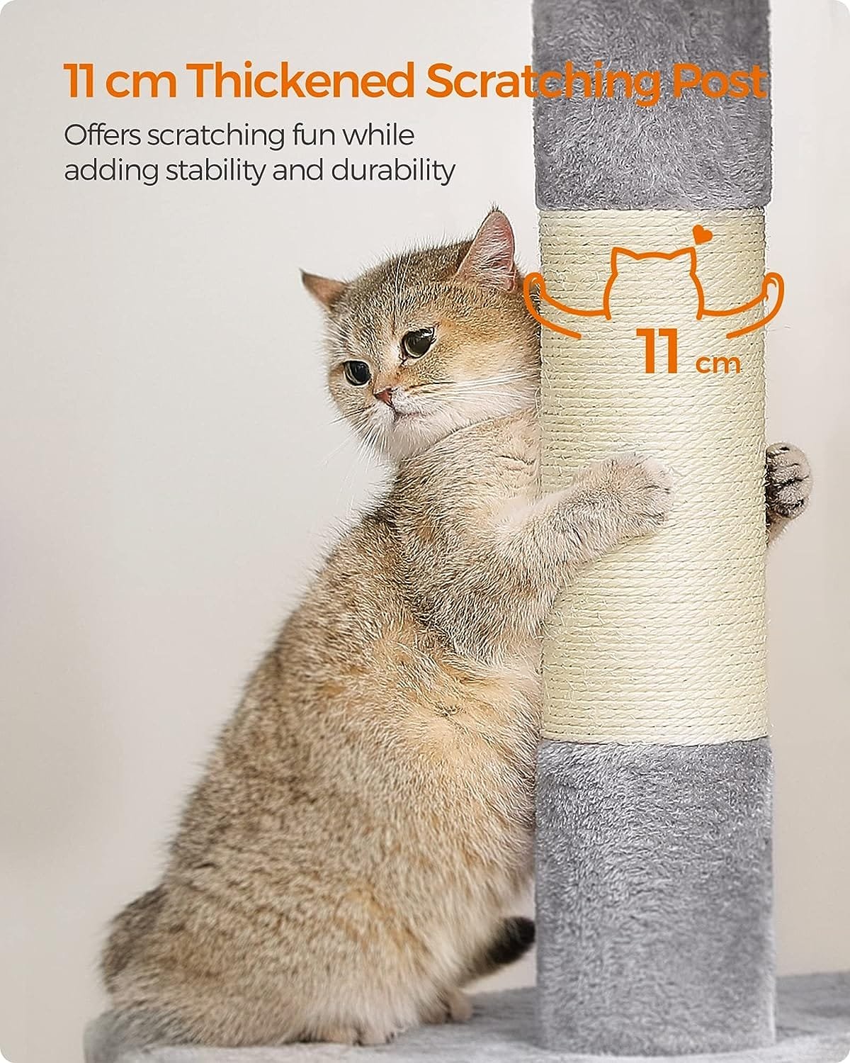 Feandrea Kattträd 101 cm katttorn, XL, för extra stora katter upp till 20 kg, stor kattabborre, 2 kattgrottor, skrapstolpe, ljusgrå