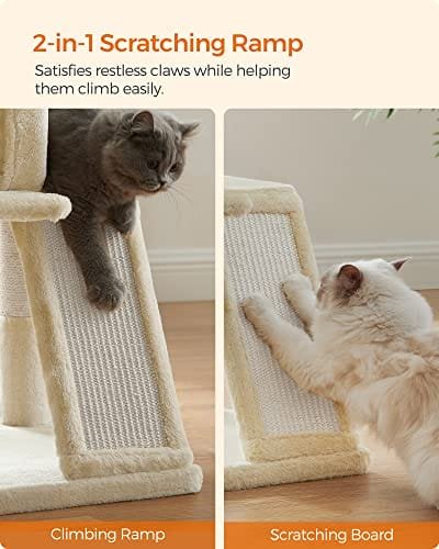 2-i-1 skrapramp: Med en skrapstolpe och en stege i ett låter den här kattskrapstolpen inte bara dina katter repa sig till fullo, utan hjälper kattungar, äldre katter och även katter med rörelseproblem att klättra upp lätt