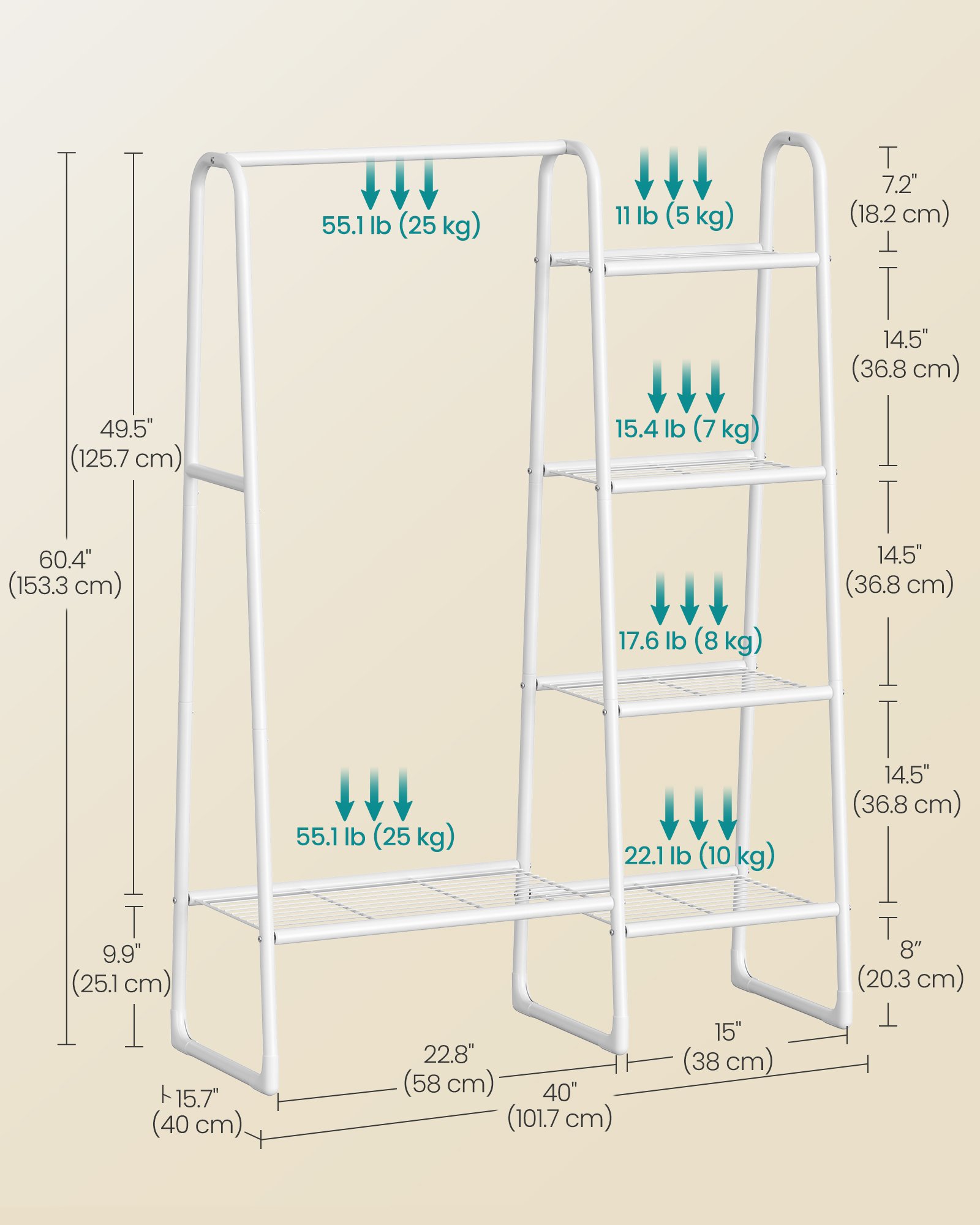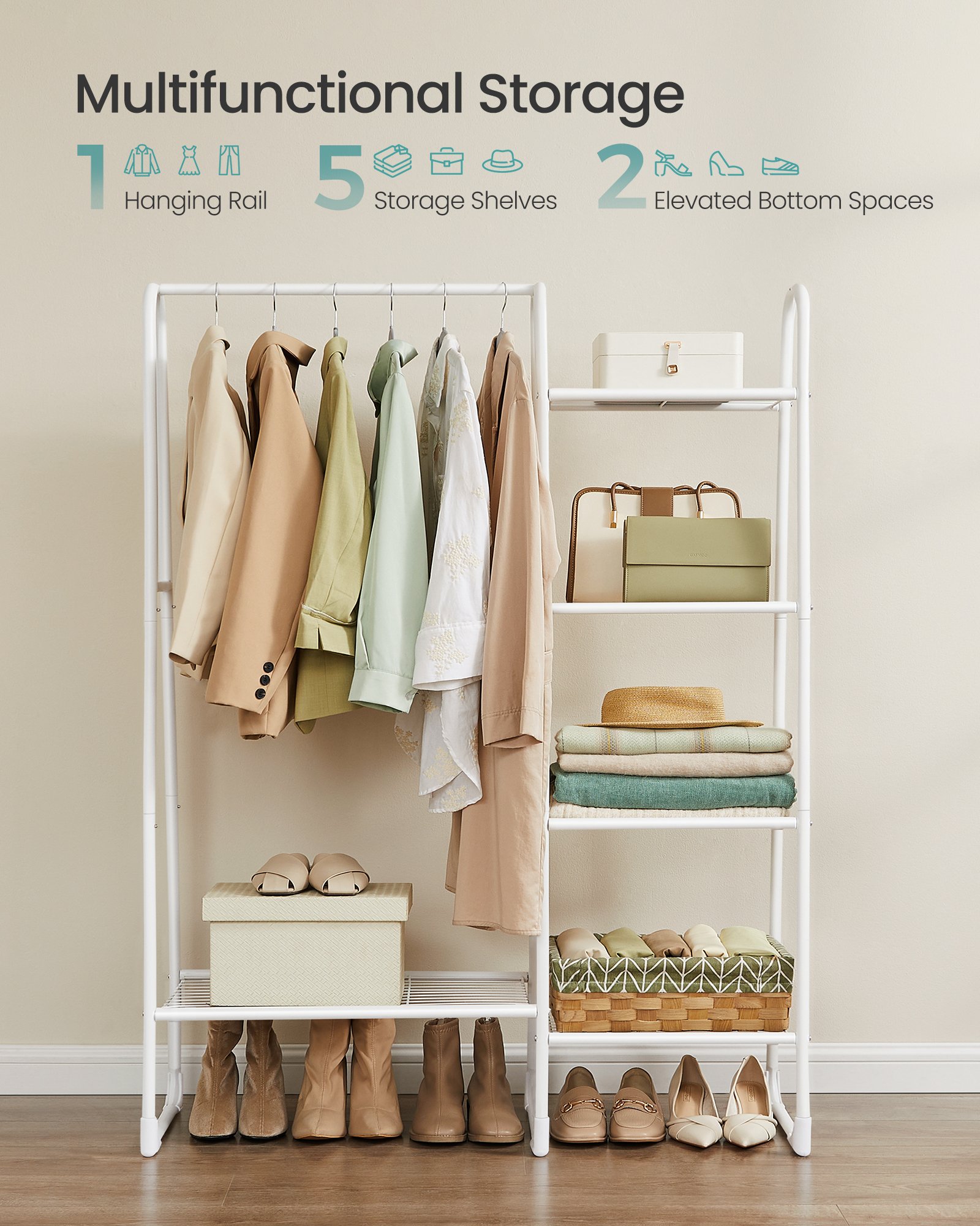 Fristående klädstång med 5 förvaringshyllor, klädställning, vit