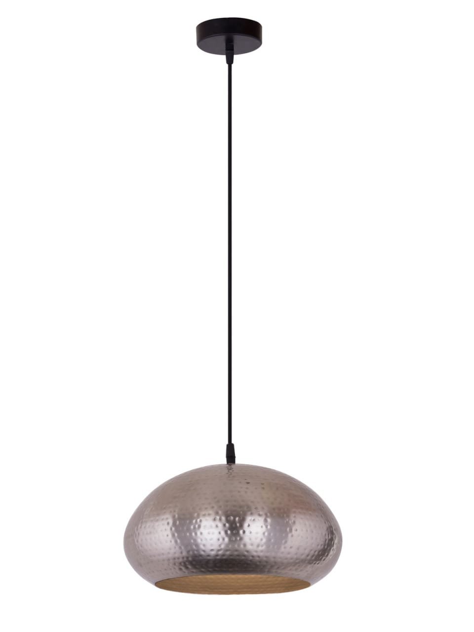 Hänglampa i halvklotform med handgjord kropp i hamrad metall belagd i silver eller guld