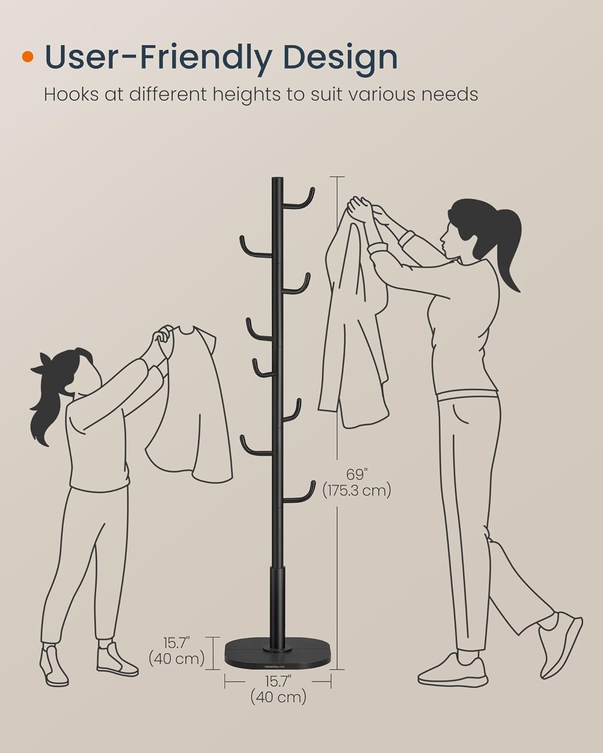 【STARK OCH STABIL】Varje krok klarar upp till 5 kg, och den stående klädhängaren har en total kapacitet på 40 kg. Den generöst tilltagna basen på 40 x 40 cm ger exceptionell stabilitet och en säker förvaringslösning.