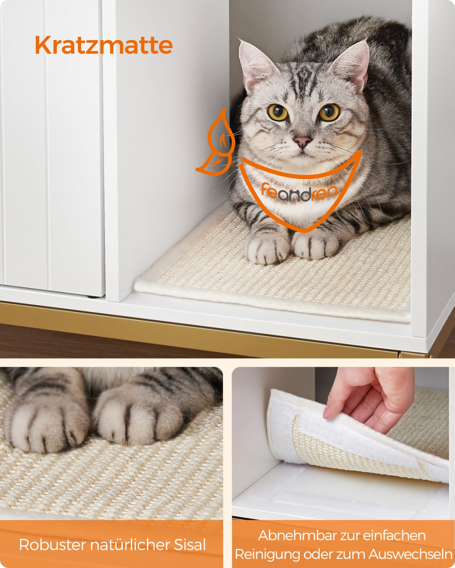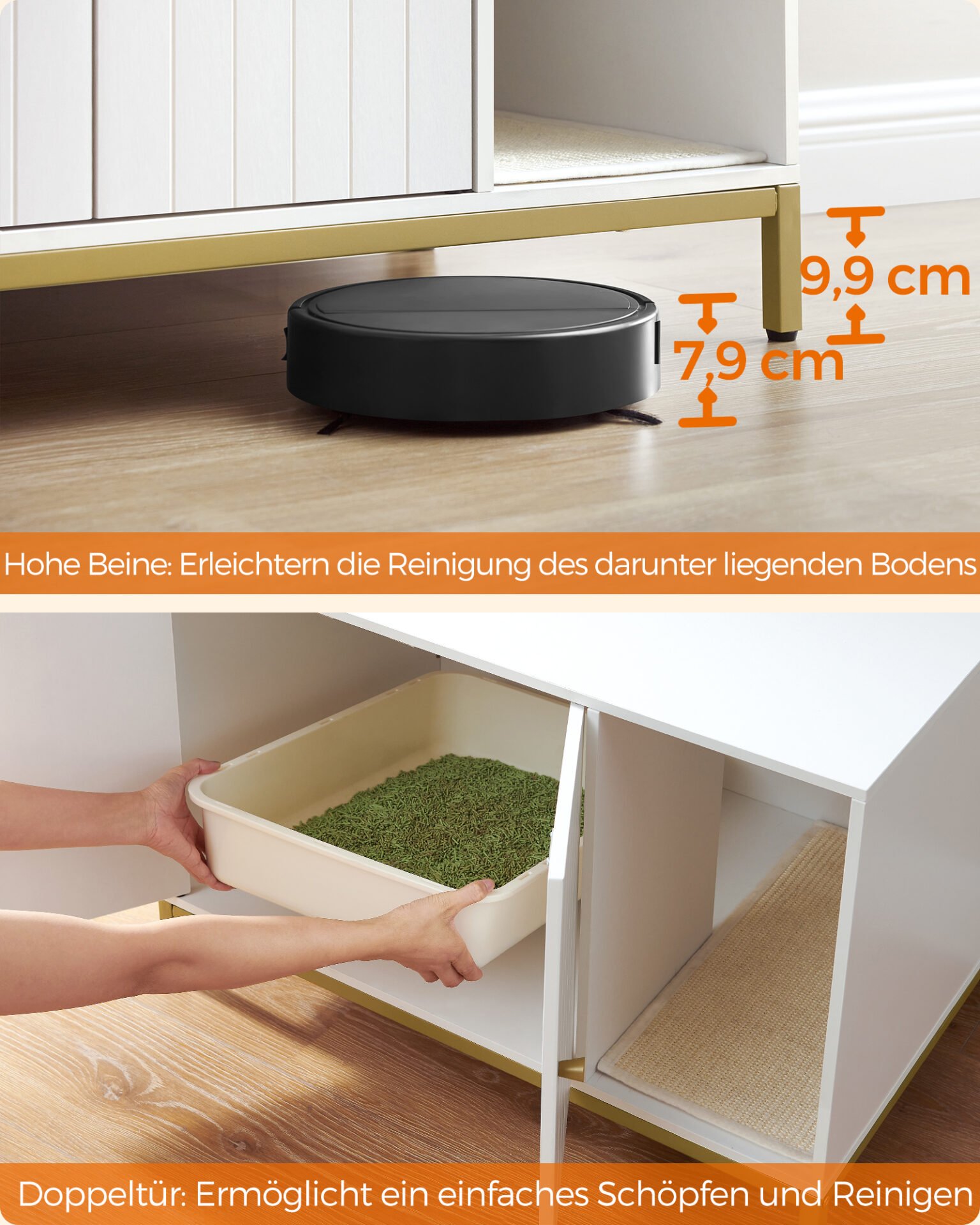 [Pryd ditt hem] Med en vit finish och guldfärgad metallram smälter denna moderna kattlåda enkelt in i de flesta heminredningsstilar och förvandlar det en gång otrevliga kattlådaområdet till ett tilltalande ögonfröjande.