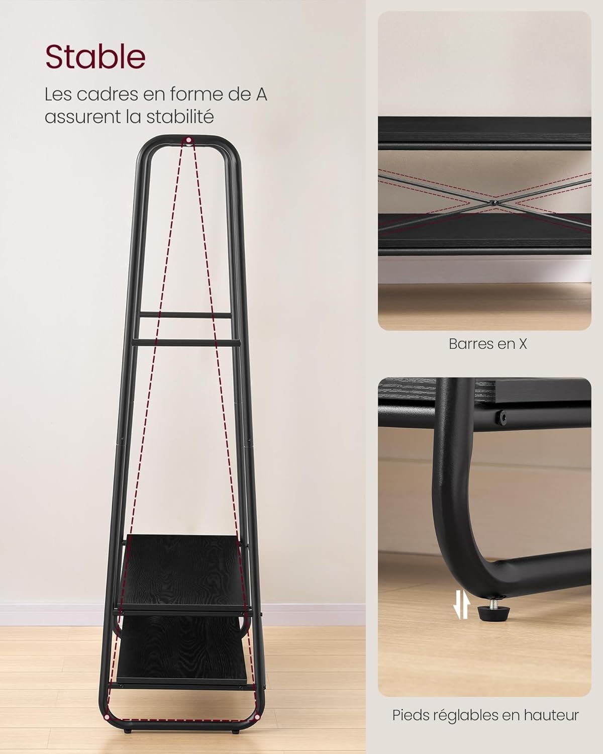 [Robust och stabilt] Detta öppna skåp är tillverkat av högkvalitativ spånskiva. Den A-formade stålramen och botten med 2 hyllor ger stabilitet. Inga problem med att den vinglar! Den klarar totalt 190 kg.