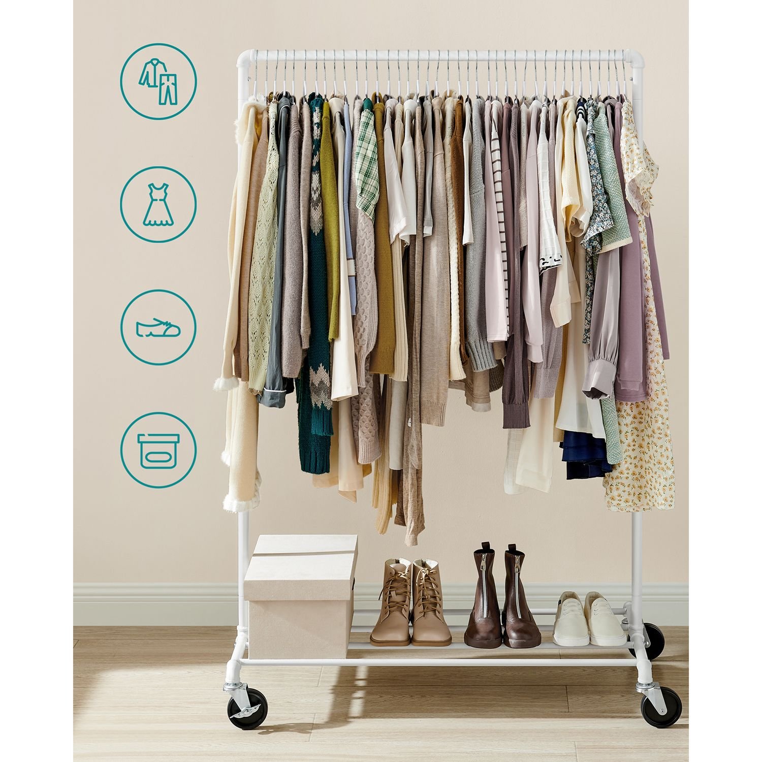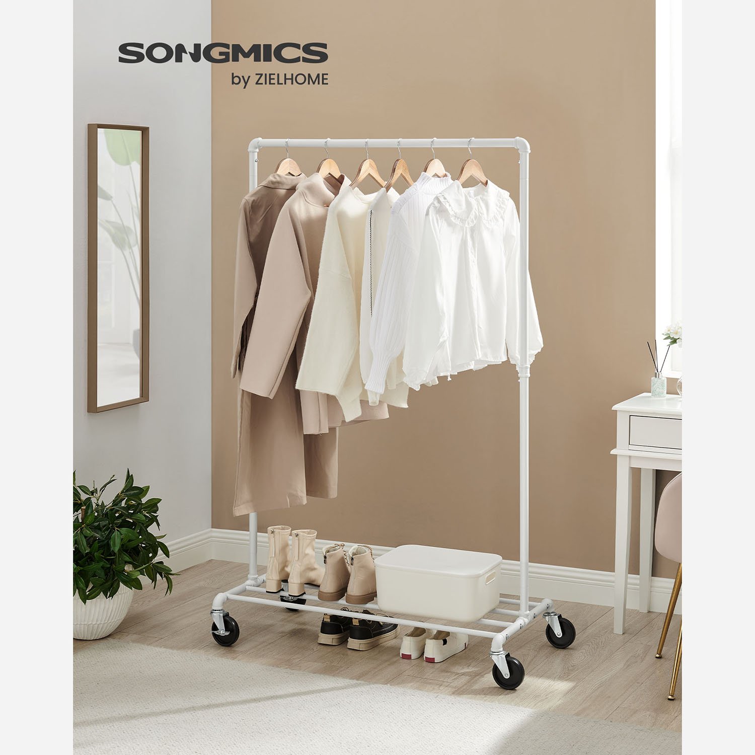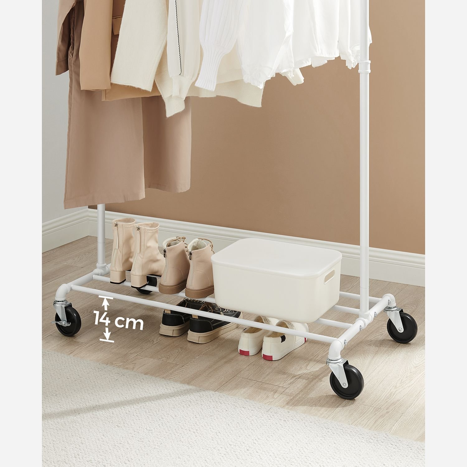 Klädställning på hjul, kraftig klädstång, rymmer 90 kg, vit