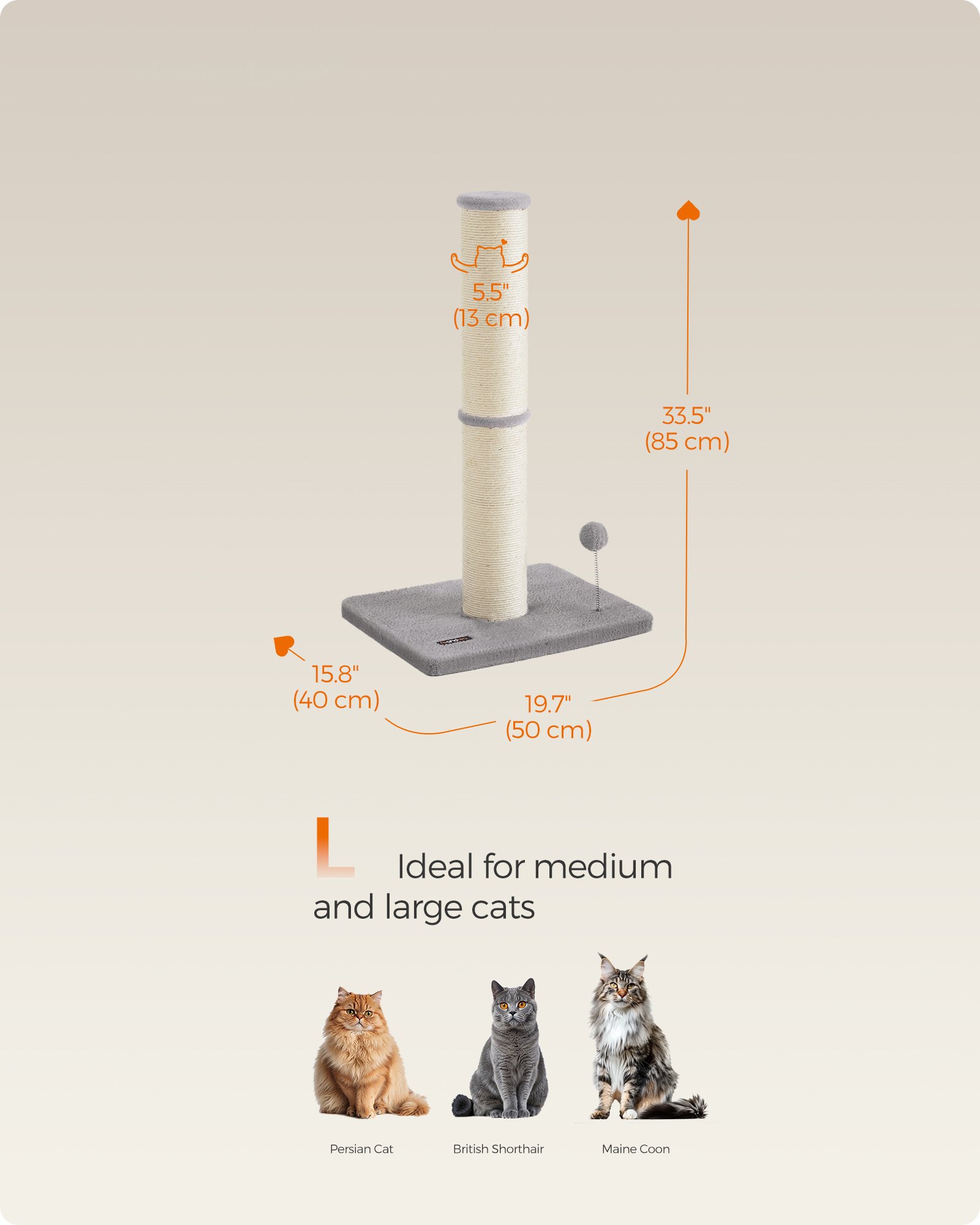 【HÖGRE BETYDER BEKVÄMARE】Med en höjd på 89 cm låter denna klösträ din kattvän sträcka ut sin kropp helt och slappna av sina muskler – perfekt för medelstora och stora katter.