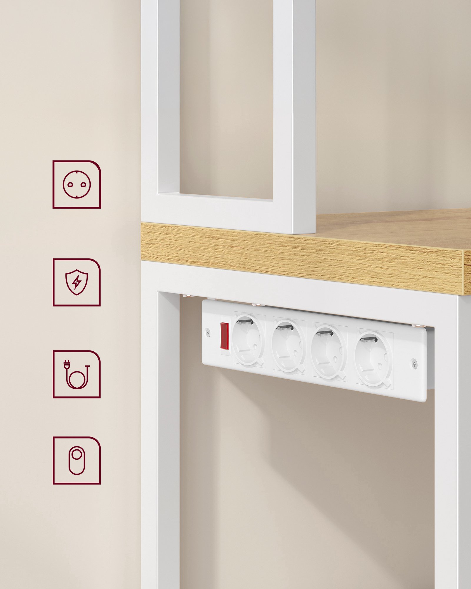 Inbyggd grenuttag: Med 4 eluttag, strömbrytare och överbelastningsskydd låter den inbyggda grenuttaget dig ansluta dina enheter säkert. Den kan installeras till vänster eller höger beroende på kökets planlösning.