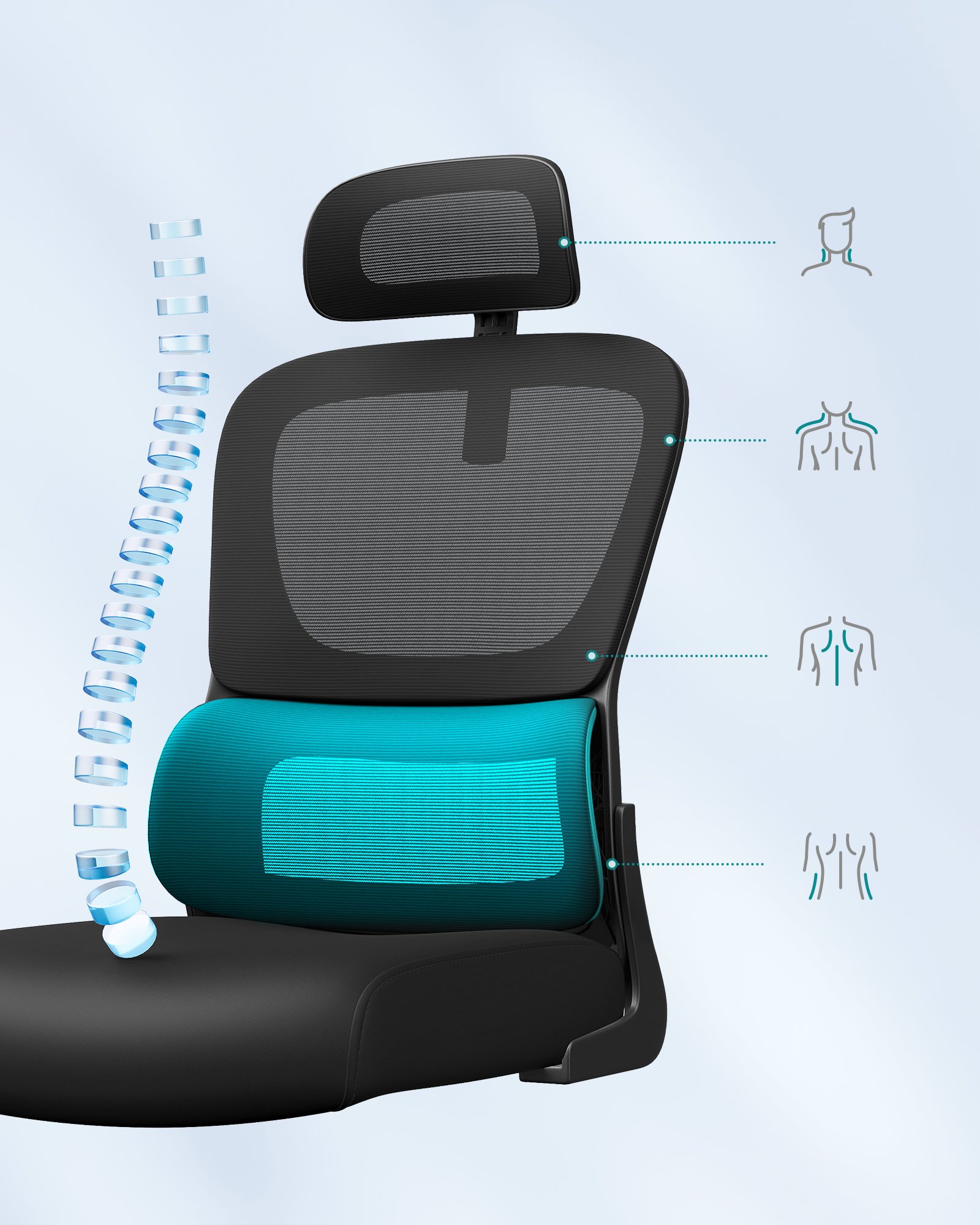 Kontorsstol, Ergonomisk nätstol för skrivbord, svankstöd, bläcksvart