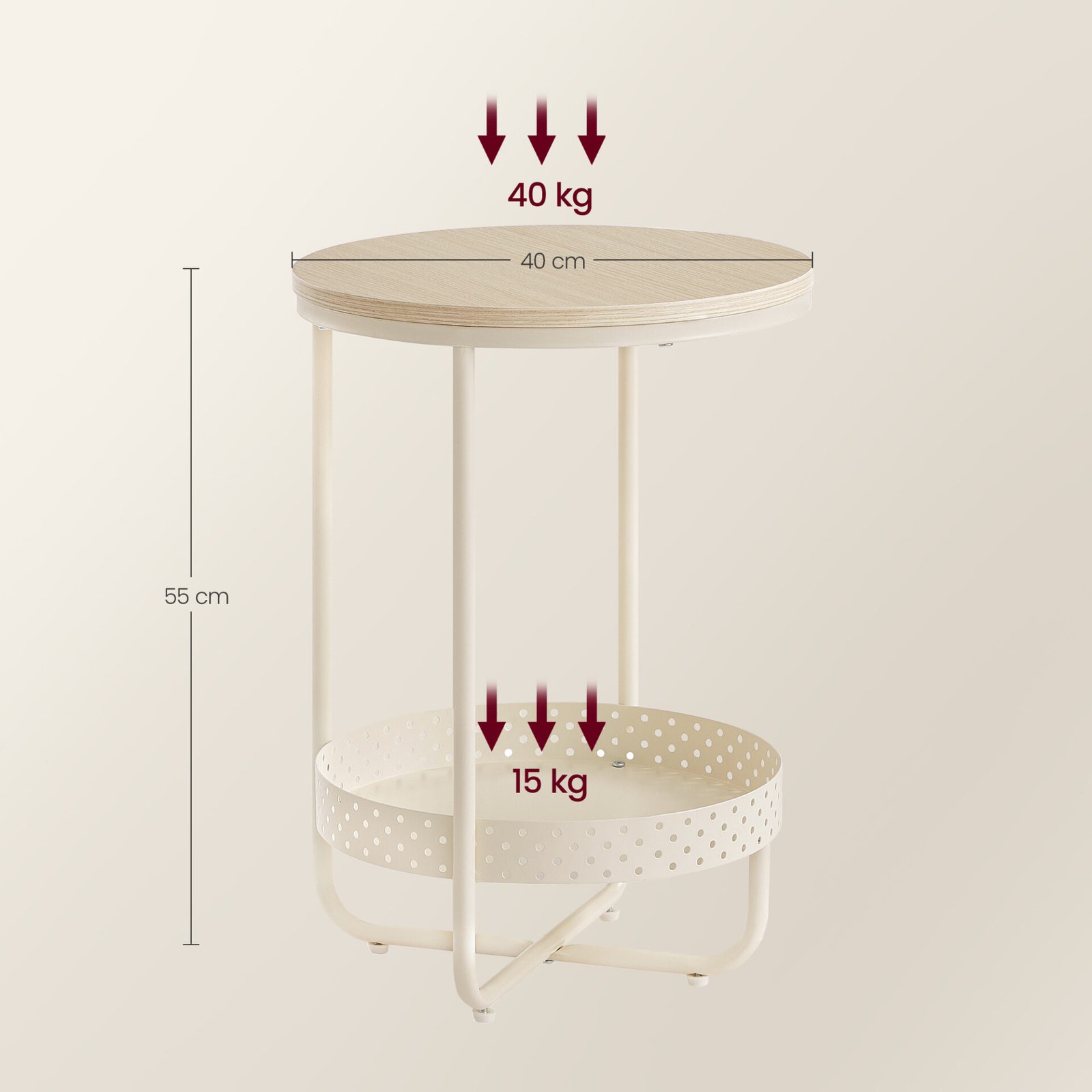[Fits Small Spaces] – 40 x 55 cm (Dia. x H) end table with 40 x 5 cm (Dia. x H) basket fits small spaces. As a side table in the living room or as a bedside table in the bedroom, it’s not bulky but offers plenty of storage space for your items.