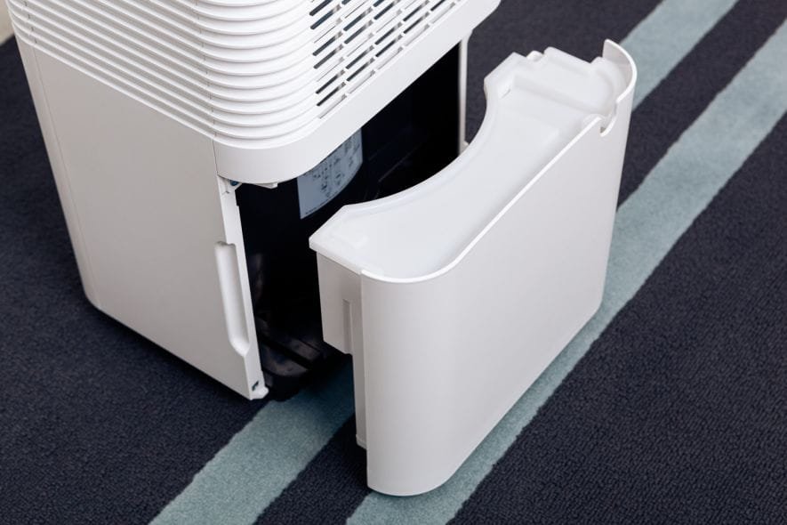 Kapaciteten för avfuktningstanken är 2 L. Enheten är utrustad med en slang som gör att du kan fortsätta dränera vatten – du behöver inte tömma tanken då och då!