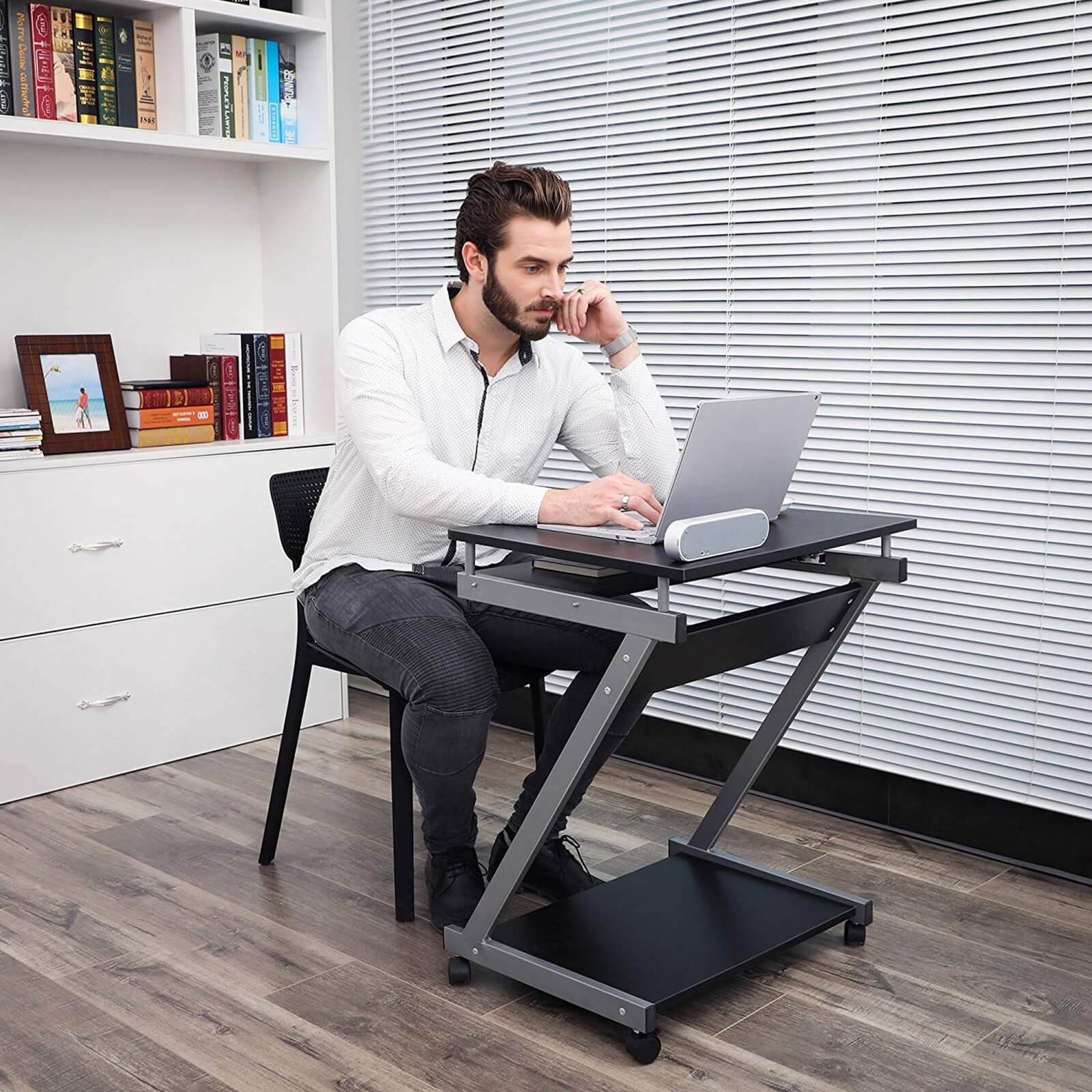 Mobilt datorbord, Z-format skrivbord, PC-bord för små utrymmen, arbetsstation, svart