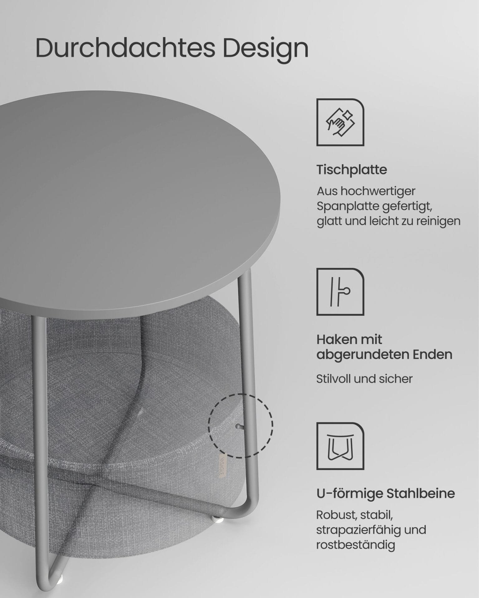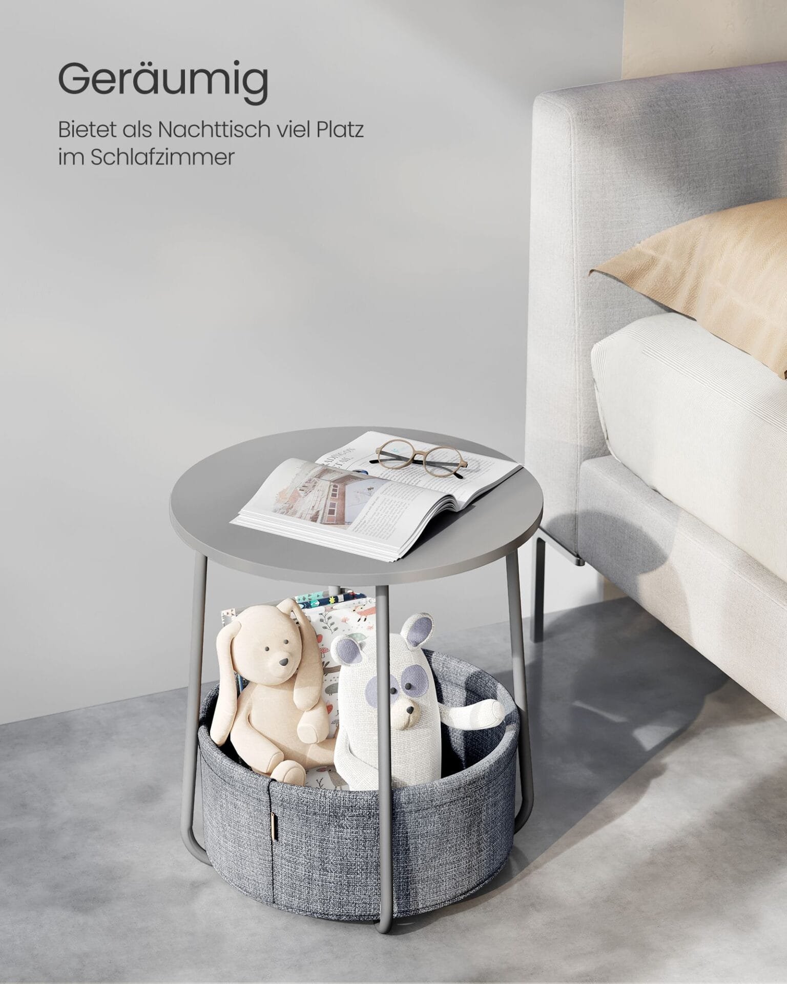 Glädjer små utrymmen: 17,7-tums diameter. 19,7″ högt sidobord med 15,6″ diameter. Den 7,2 tum höga korgen passar perfekt i små utrymmen, tar liten plats samtidigt som den erbjuder gott om förvaring. Kan användas som sidobord i vardagsrummet eller nattduksbord i sovrummet