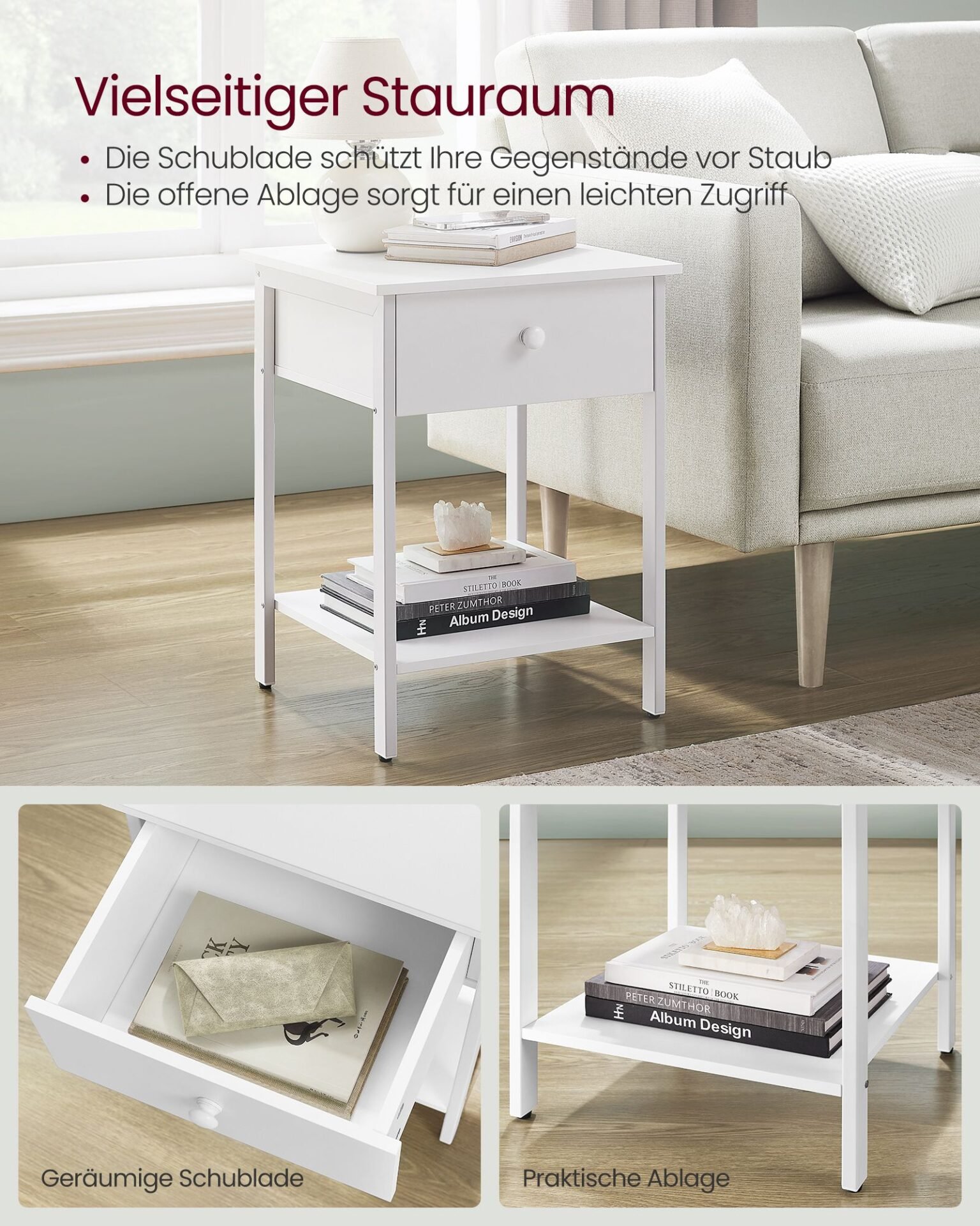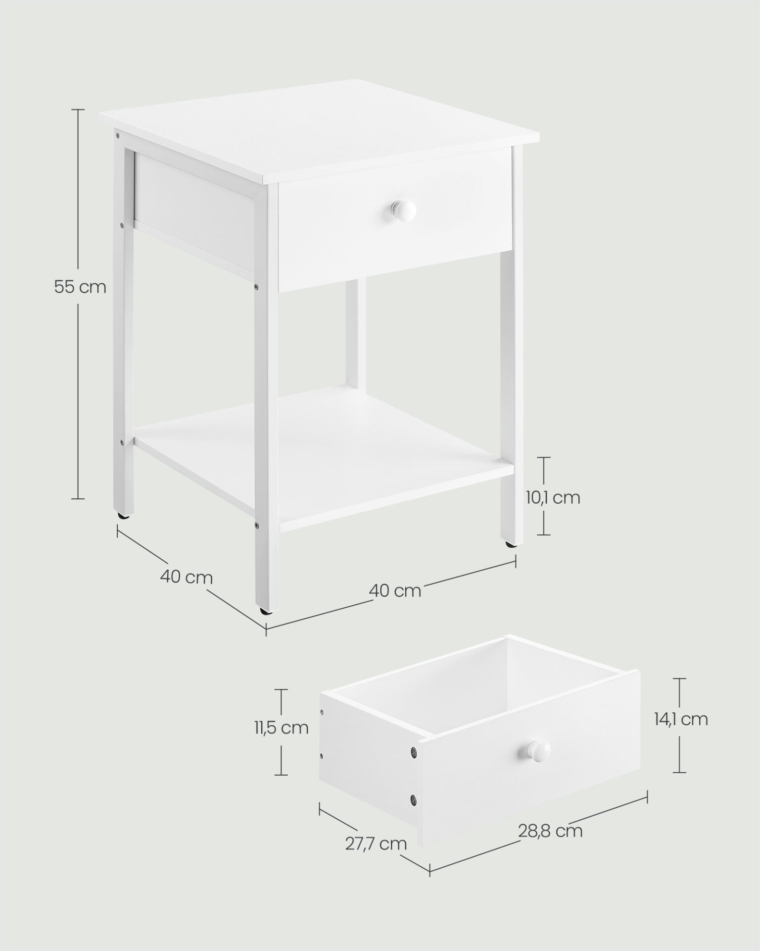 Nattduksbord, Sidobord med låda och hylla, Nattduksbord, Sidobord, Mattvit