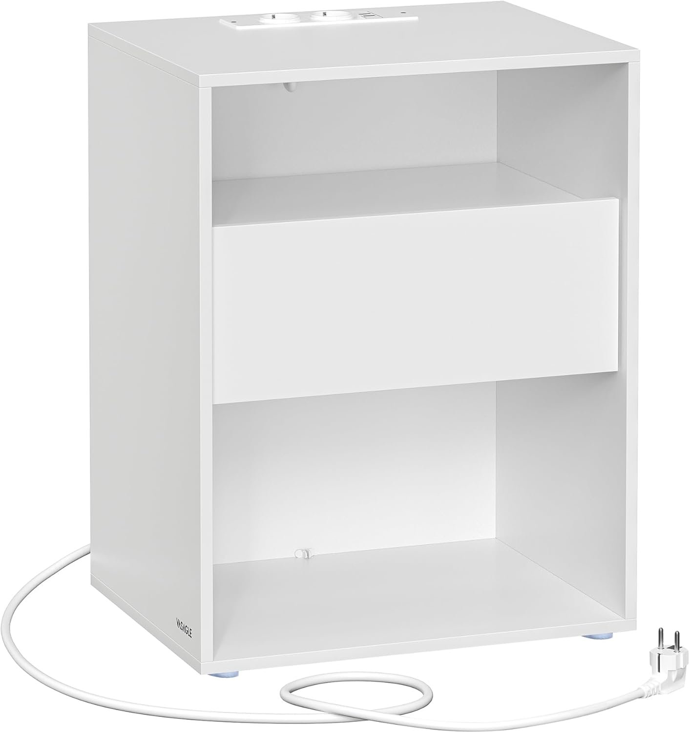 【Multiplug till hands】Håll dina enheter laddade med det inbyggda grenuttaget (2 USB-portar och 2 AC-uttag). Detta nattduksbord låter dig enkelt ladda din telefon, surfplatta eller headset utan att lämna din bekväma säng.