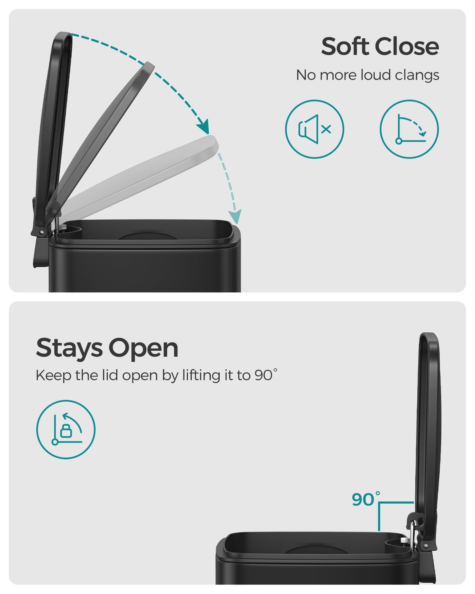 Papperskorg, Köksavfall, Stålpedal, Med Innerhink, Mjukstängande, 6 L, Svart