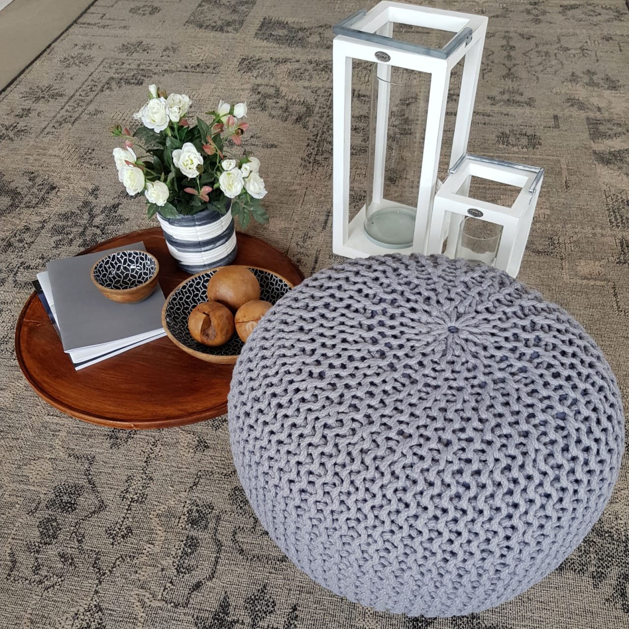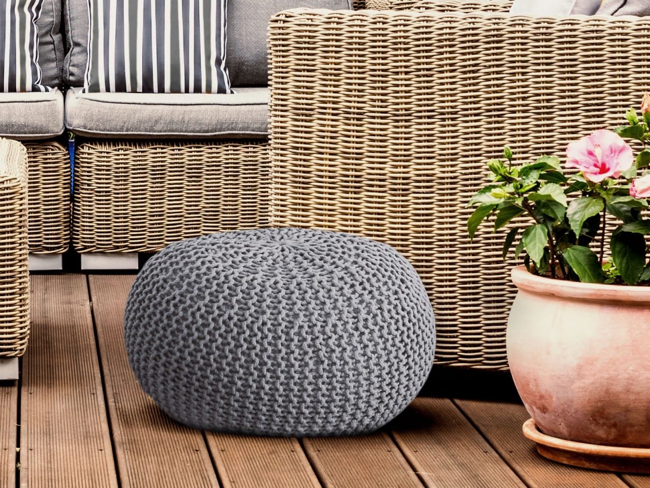 Utomhuspall i en chunky stickad look, ett riktigt blickfång för din trädgård eller poolområde