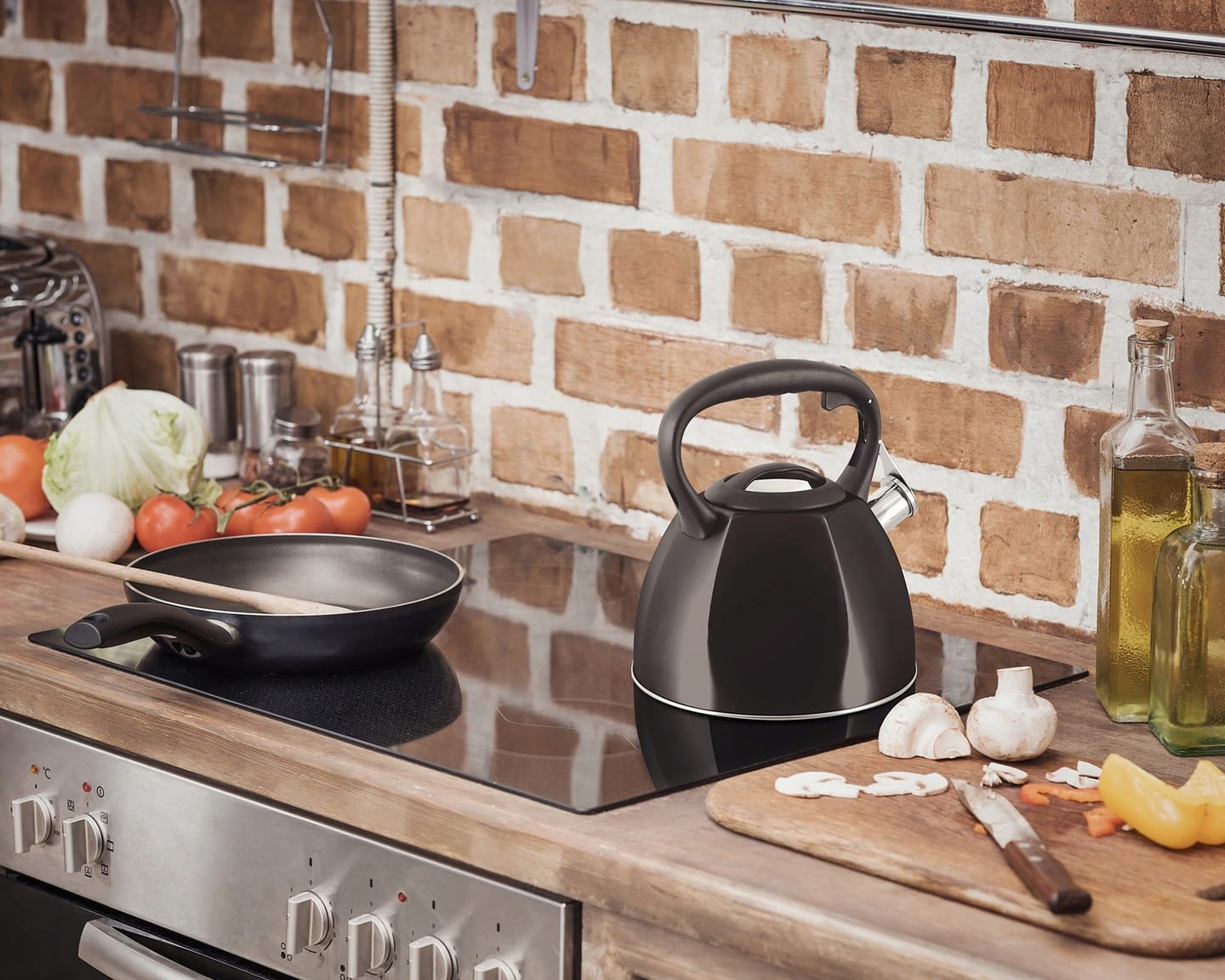 Elegant förpackning Modern designer form av sex väggar elegans i varje tum Perfekt lösning, som kommer att förbättra funktionaliteten i ditt kök och glädja alla med dess unika utseende och färg. En vattenkokare för användning på alla typer av spisar: gas, induktion, elektrisk, keramisk . En permanent visselpipa fäst vid det kokta vattnet, som du enkelt och fritt kan luta med en knapp i handtaget. Kettle har en 2,6 liters kapacitet Ett sätt att rädda den elektriska vattenkokaren är en av de största elätarna hemma. Det enklaste sättet att ersätta den med en traditionell vattenkokare upphettad med en spisbrännare. Kettle Vito kommer inte bara att vara dagliga hushållsapparater, utan också ett dekorativt element i vårt kök.