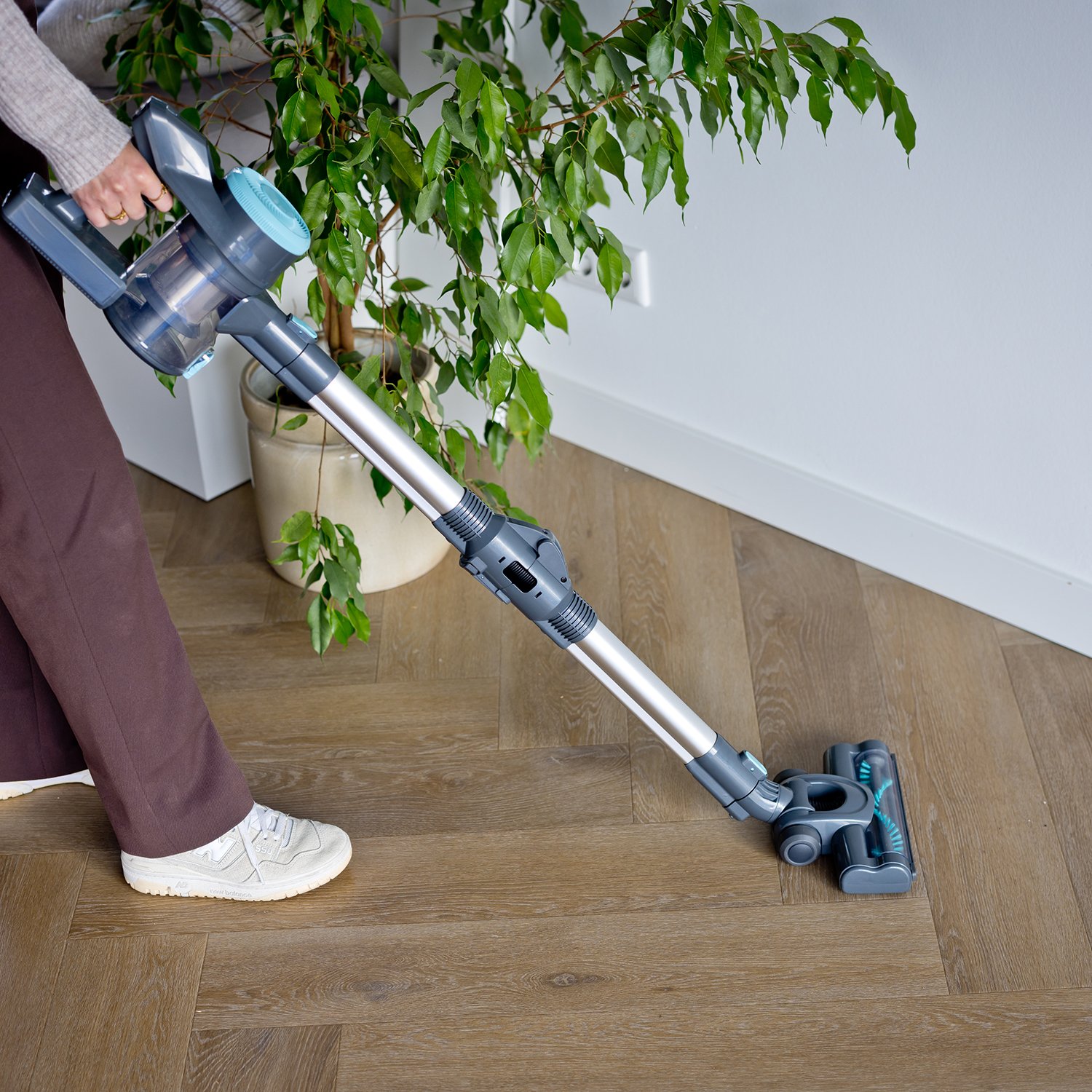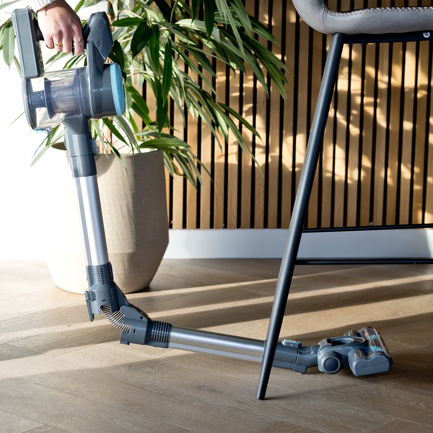 Flexibelt stål för komfort: Med böjfunktionen rengör du enkelt under möbler utan att böja dig – bekvämt och ergonomiskt rengöring.
