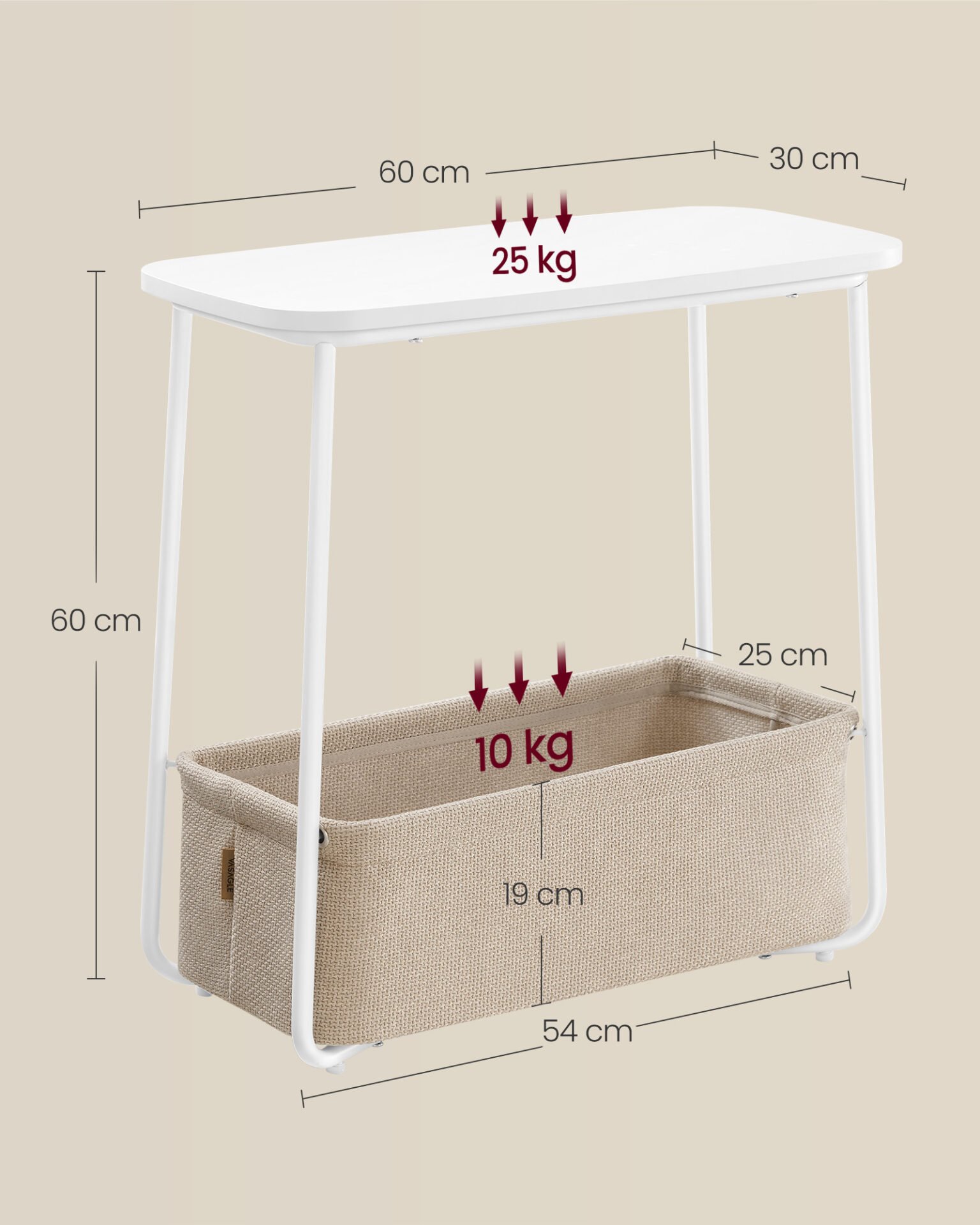 [Glädjer små utrymmen] Sidobordet med 44 cm diameter x 49 cm höjd och en korg på 38 cm diameter x 18 cm höjd passar perfekt i små utrymmen och tar upp lite plats samtidigt som det erbjuder gott om förvaring. Du kan använda det som sidobord i vardagsrummet eller nattduksbord i sovrummet