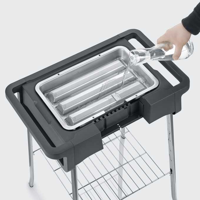Electric Grill Severin Style EVO PG 8124 Utan risken för brännskador tack vare kassaskåpet att beröra Safetouch -bostäder Snabb grillning : Temperaturökning från 0 ° C upp till 350 ° C erhålls efter 10 minuter En speciellt utformad fett tack säkerställer optimal värmeutbredning För användning inom och utanför rummen De flesta delar kan utvecklas, vilket underlättar rengöring Vatten i en flikfack av fett underlättar rengöring, skyddar mot att bränna fett och uppkomsten av den brinnande lukten temperaturen uppåt till 350 ° C uppnås inom 10 minuter Röd kontrolllampan Automatisk avbrytning: Säkerhetsmikrobrytaren – värmaren stängs automatiskt av efter avlägsnande av