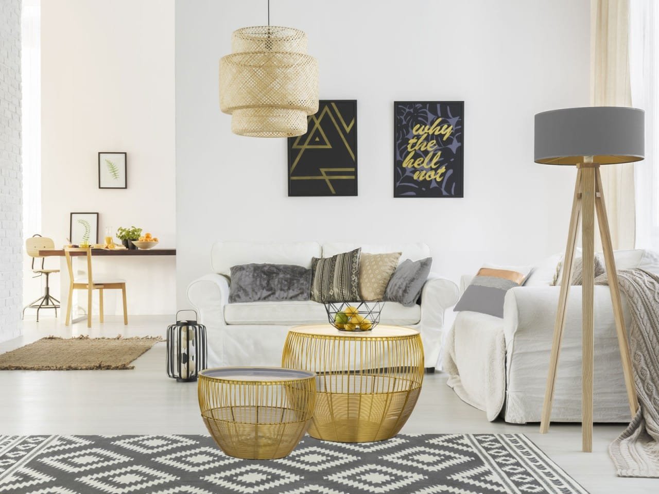 Soffbordssetet om 2 gjorda av guldpläterad flätad ram har en avtagbar bordsskiva med emaljfinish. Bordssetet kännetecknas av sin ädla design i den eleganta loftstilen och erbjuder även förvaringsutrymme under den avtagbara bordsskivan. Borden är perfekta för ditt vardagsrum, gästrum, sovrum eller hall och är mångsidiga. Oavsett om du letar efter ett soffbord eller ett sidobord för en lampa, dekorationer eller en skål, ger Glamira-borden varje rum en riktig höjdpunkt.
