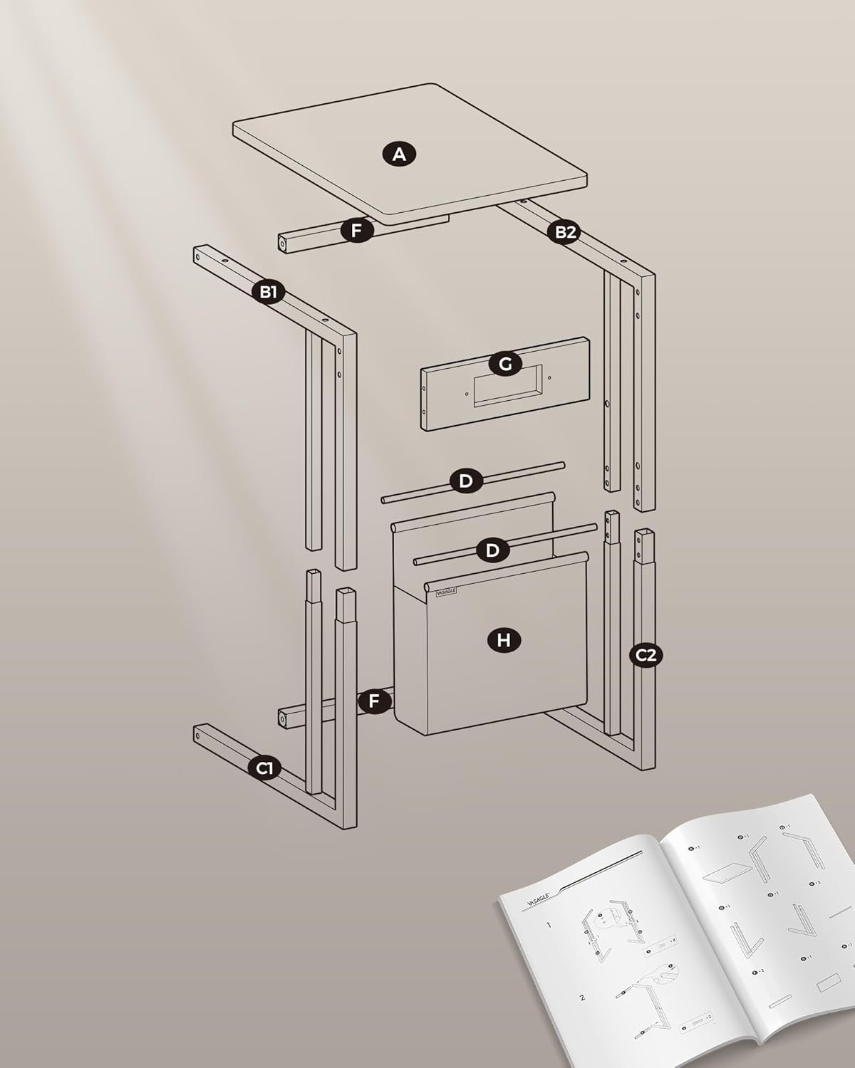 Lätt att montera: Tack vare den enkla strukturen, de markerade delarna och de tydliga instruktionerna (engelska språket garanteras inte) kan du snabbt sätta upp detta soffbord.