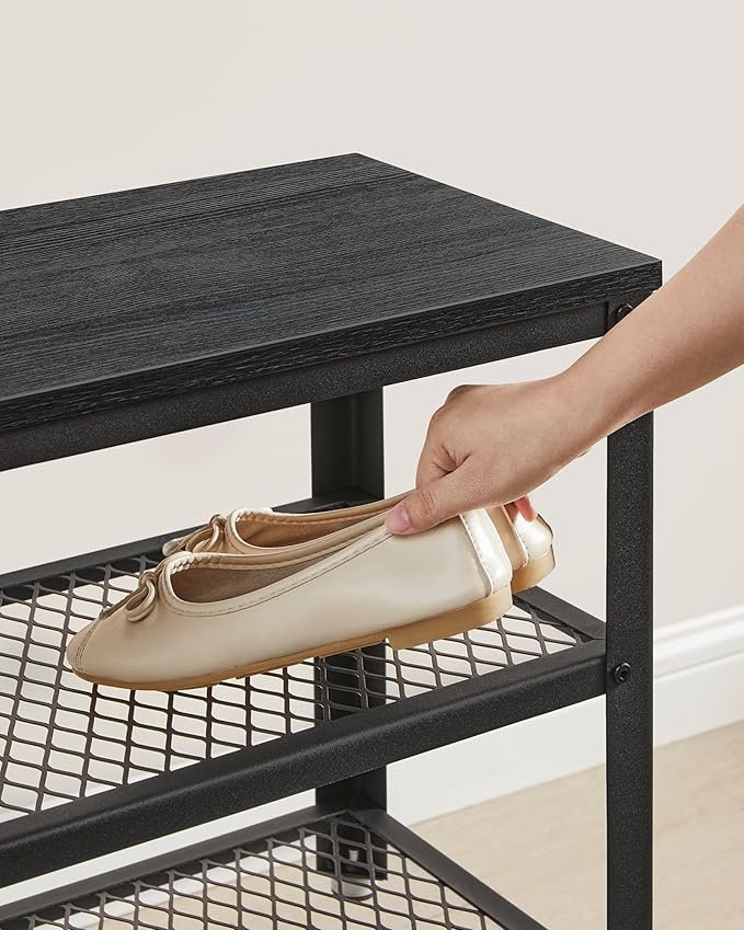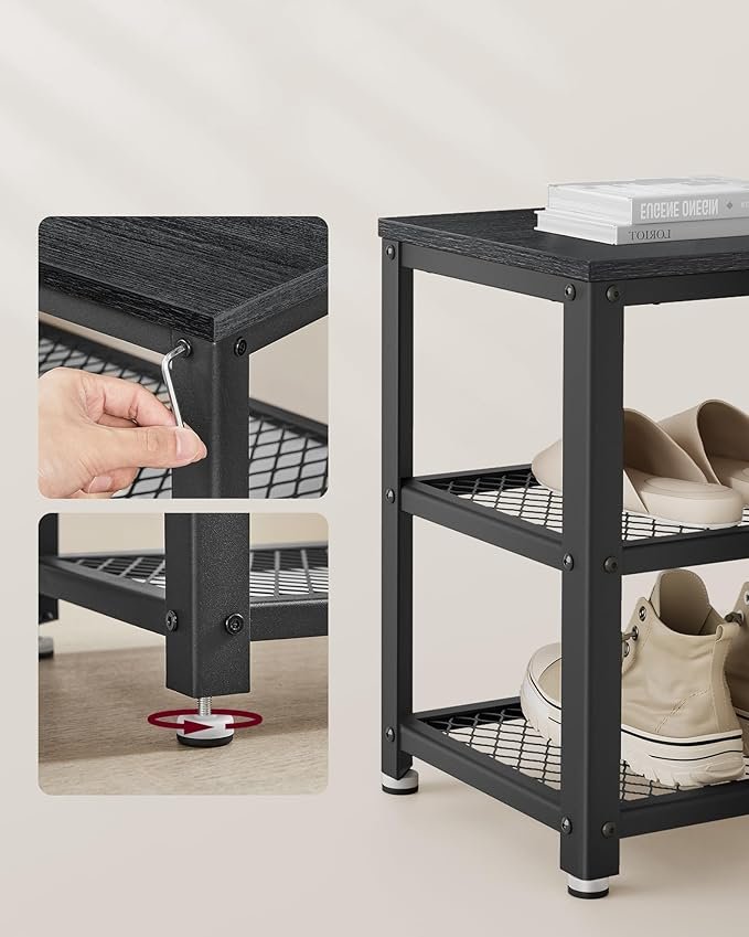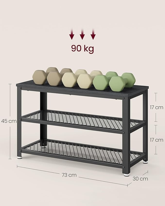 Skobänk, skohylla med 2 gallerhyllor för skor 30 x 100 x 45 cm, Grå-Svart