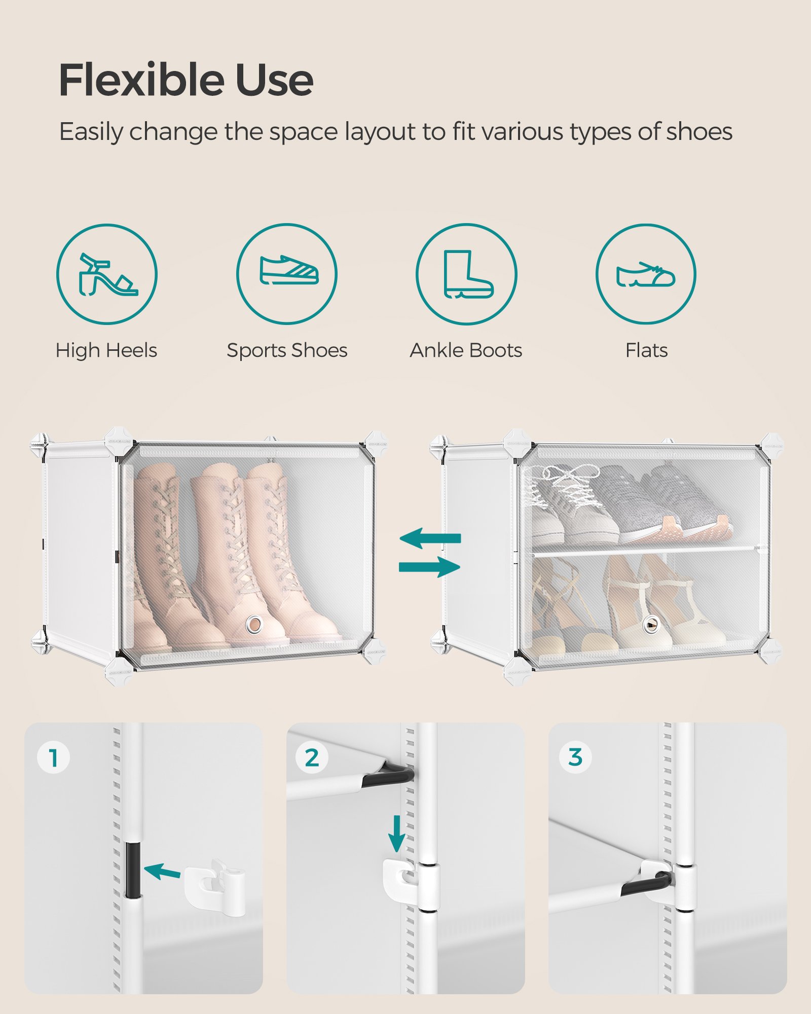 Gör-det-själv och mångsidigt: Arrangera denna förvaringsenhet som en enda hög hylla, 2 eller 3 separata rader, eller till och med dela upp i 2 mindre enheter för att organisera skor, väskor eller toalettartiklar i din hall, badrum eller andra utrymmen.