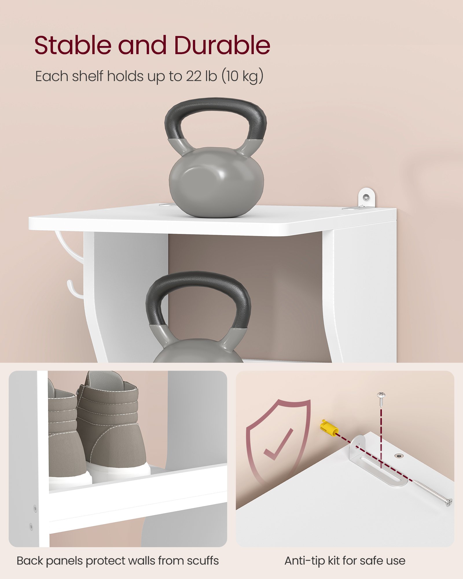 [Praktisk krokförvaring] Häng dina nycklar och plånböcker på den smala skohyllans krokar för snabb förvaring under morgonrusningen. Ännu bättre är att krokarna kan installeras till vänster eller höger efter behov