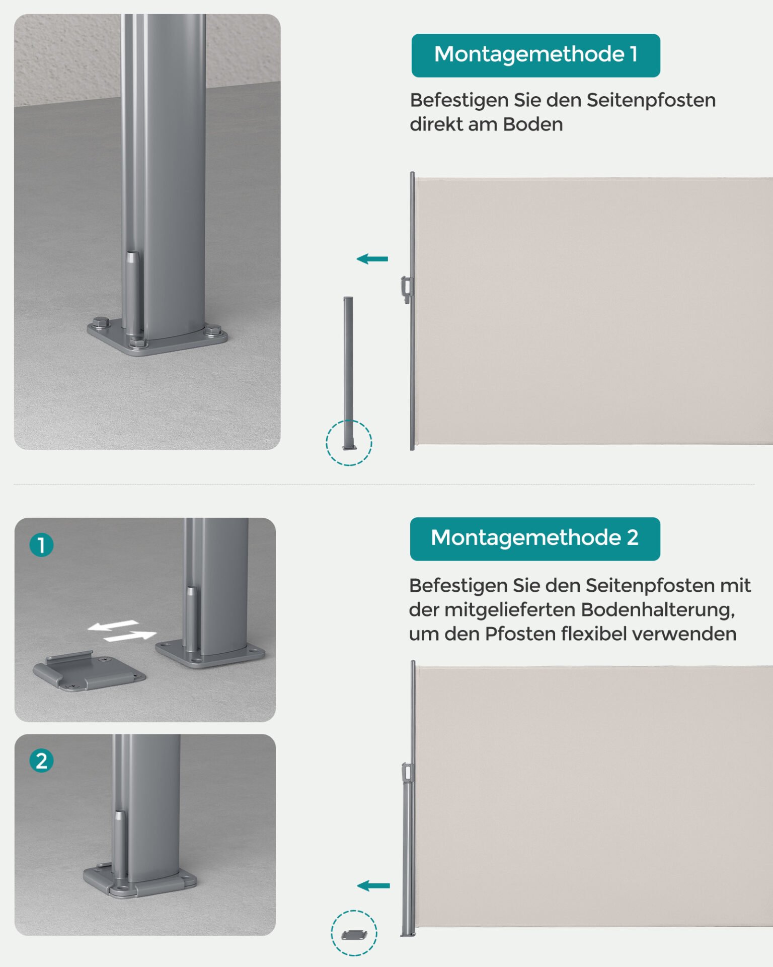 2 mounting options from the awning post – you should be able to posts both the included floor directly to the base. Any Kind Of Montage verspricht very good stability