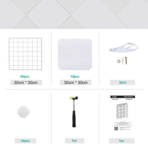 Specifikationer:- Färg: Vit Material: PP-plastinsats, ABS-plastkontakt, metalltrådsnät- Storlek Trapp: 93 x 31 x 123 cm (LXBXH)- Varje kubstorlek: 30 x 30 x 30 cm (LXBXH)- Vikt: 8,7 kg-max. Statisk lastkapacitet per Utrymme: 10 kg förpackningsinnehåll:- 43 x trådnät (30 x 30 cm)- 12 x pp-insats (30 x 30 cm)- 44 x plastplugg- 1 x gummiklubba (175 g)- 2 x tippskyddsfäste – 1 x instruktioner (da, de, fr, es, it)