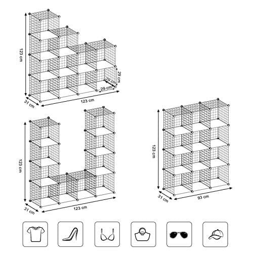 Songmics 12 Cube Wire Grid Förvaringsställ, sammankopplade hyllor med metallnätsgångjärn, Vit
