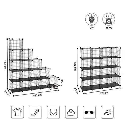 Songmics 16 Cube Metal Wire Storage Organizer, DIY-garderobsskåp och modulära hyllgaller, svart