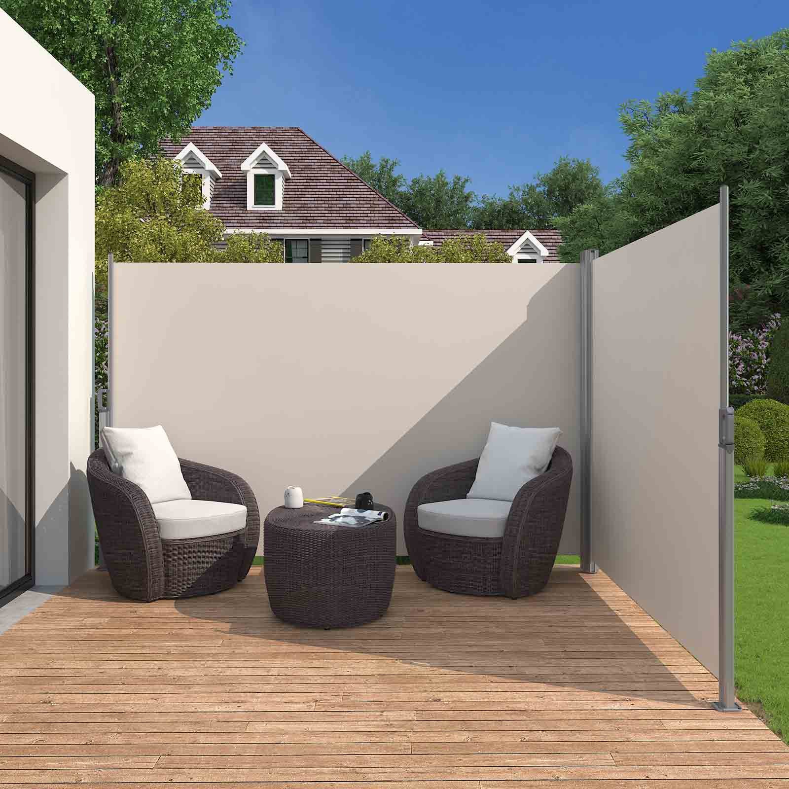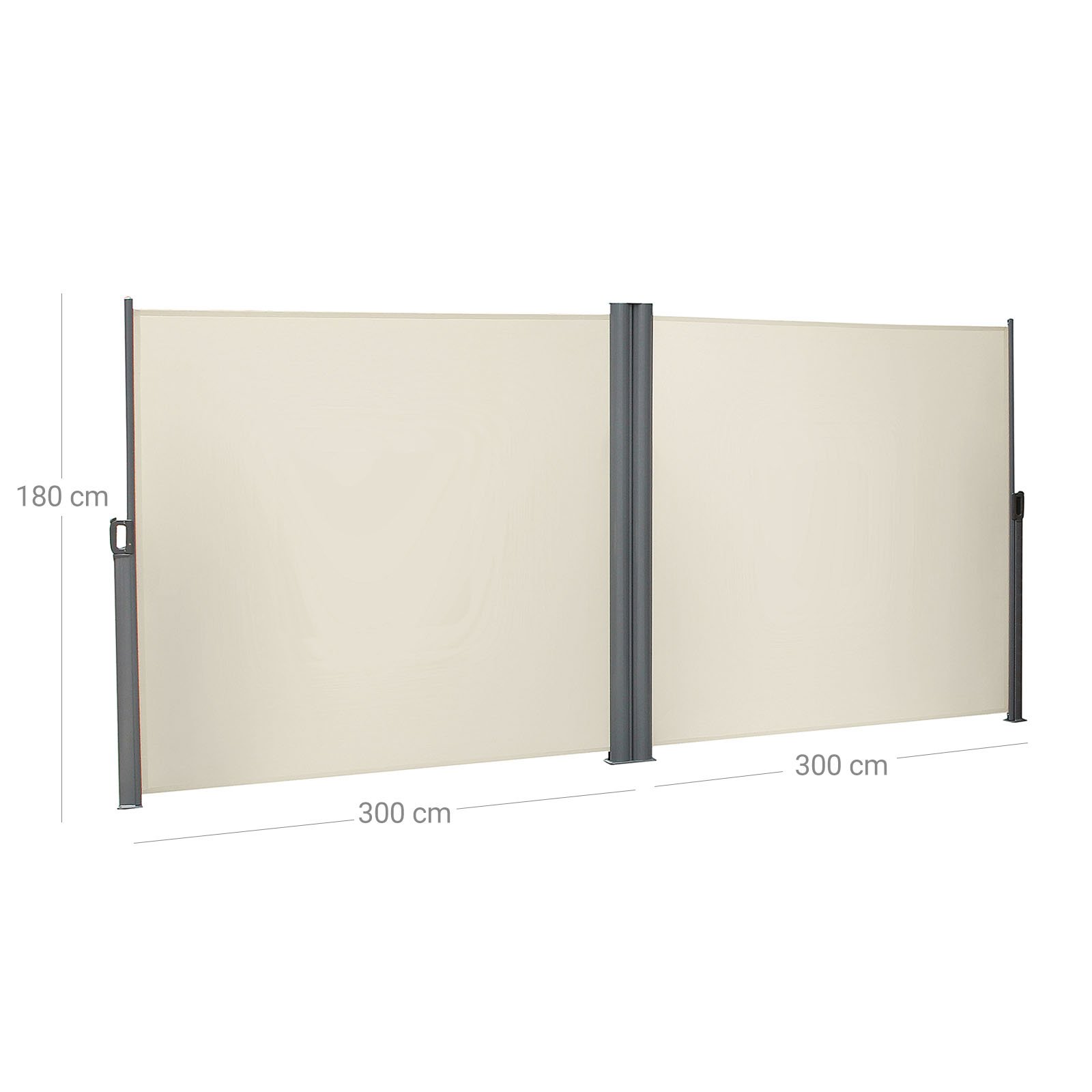Specifications:- Colour: Beige- Material: Aluminium Alloy, 280 g/m² Polyester, PU Coating- Product Size: 1.8 x 6 m (H x L)- Product Weight: 17 kg Package Contents:- 1 x Side Awning- 1 x Accessory Kit- 1 x Instructions (EN, FR, IT, DE, ES)