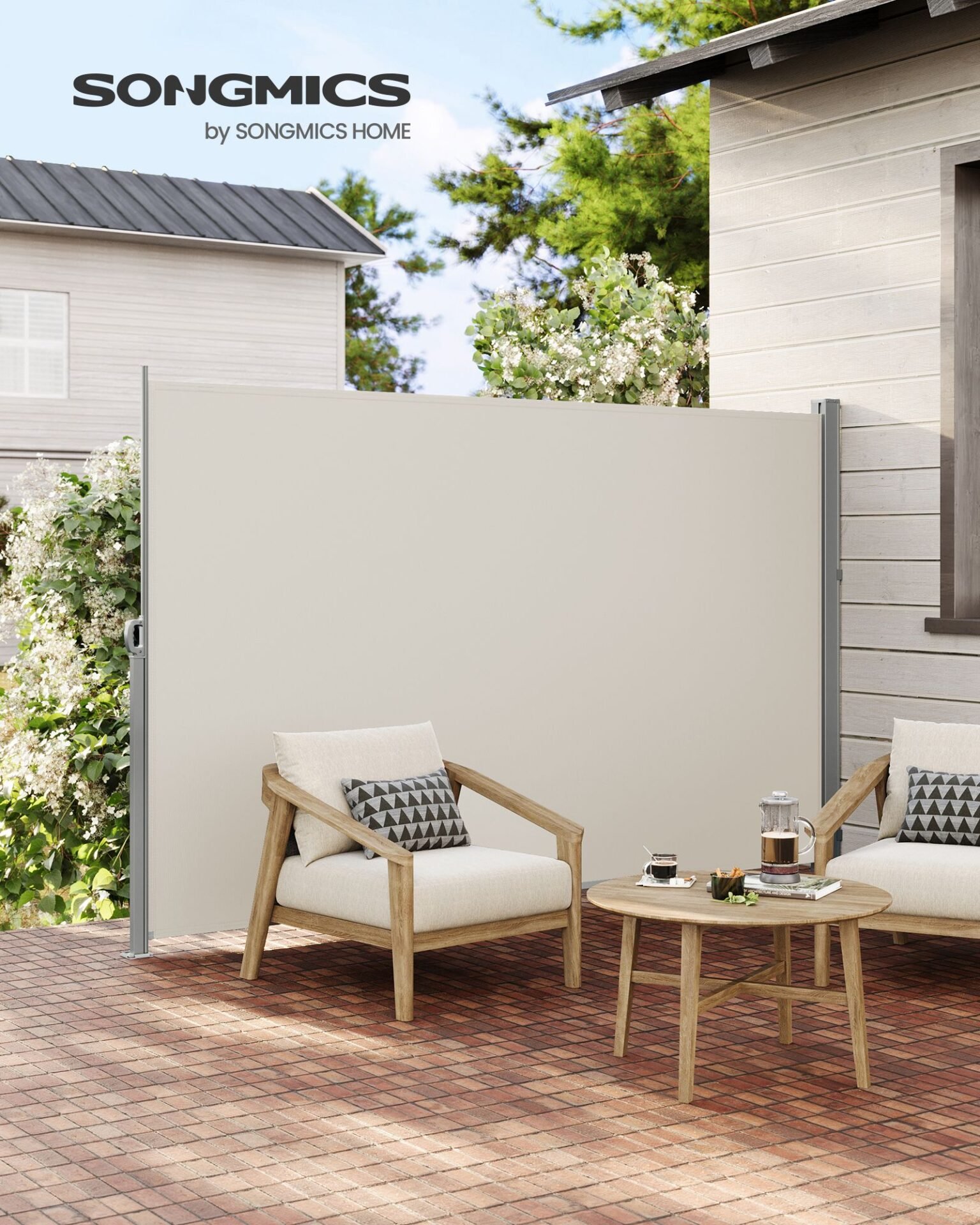 Protective patio awning: this side awning protects you from the prying eyes of your neighbours. So you can have breakfast on your patio. By the way, the child lock on the handle makes this awning even more reliable