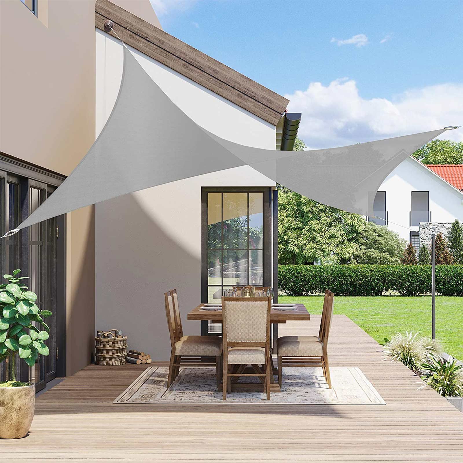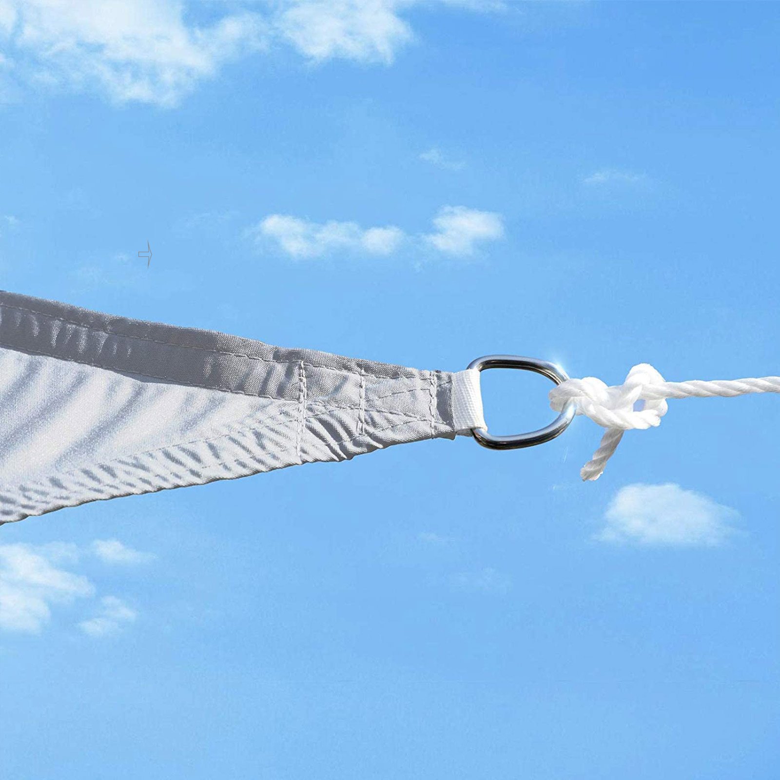 PREPARED FOR THE WIND: The concave shape and stretchable material of the UV block sail significantly reduce the risk of damage even in strong winds. 4 robust polyester loops, 4 stainless steel rings and 2 m long ropes are used for installation and also withstand windy gusts